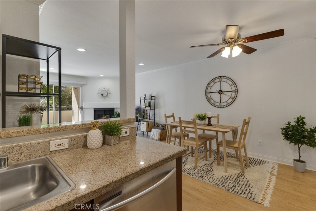 MET WOODLAND HILLS !! This highly sought after beautiful 1 bedroom, 1 bathroom unit is located in building #5. Your new home offers an open floor plan with upgrades throughout including: wood laminate flooring, recessed lighting, granite countertops, stainless steel appliances, 2 large closets, a cozy fireplace, and a extra large covered balcony. It also features 2 ASSIGNED COVERED PARKING SPACES underground. The Met is very close to restaurants, bars, malls, and minutes away from the Village of Warner Center. The Met provides a guard gated complex with resort like amenities: 6 lighted tennis courts, 4 resort swimming pools, Indoor Basketball and Racquetball Courts, State of the Art Fitness Center, Lush landscaping, Courtyard Patios, Clubhouse , Community Center, Children's Play area and 24-Hour security. This condo will not disappoint. It is also FHA and VA approved!