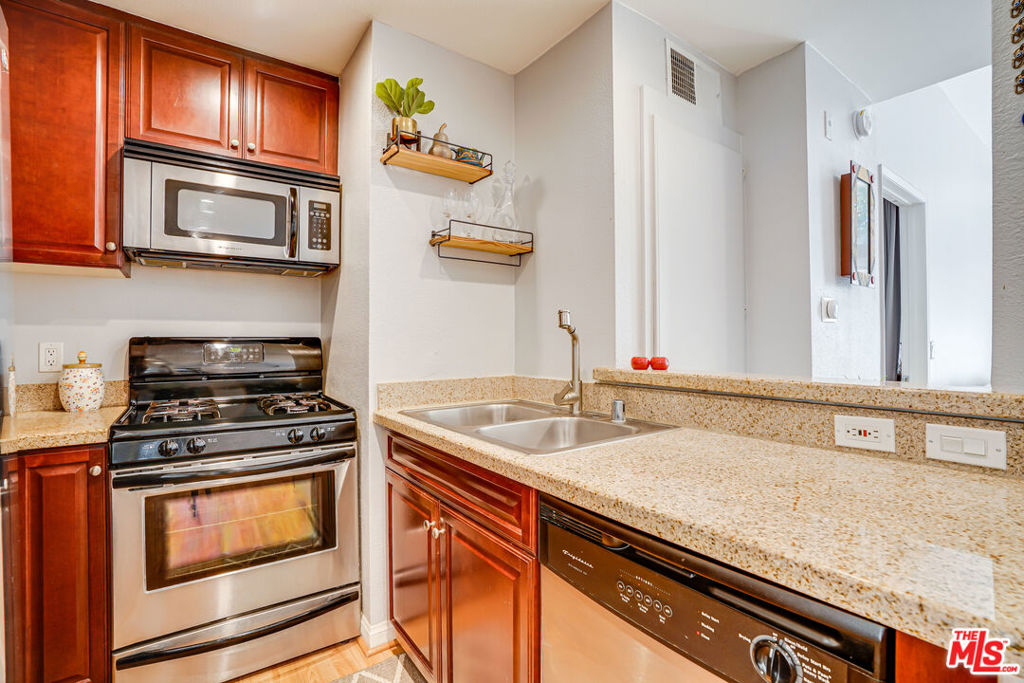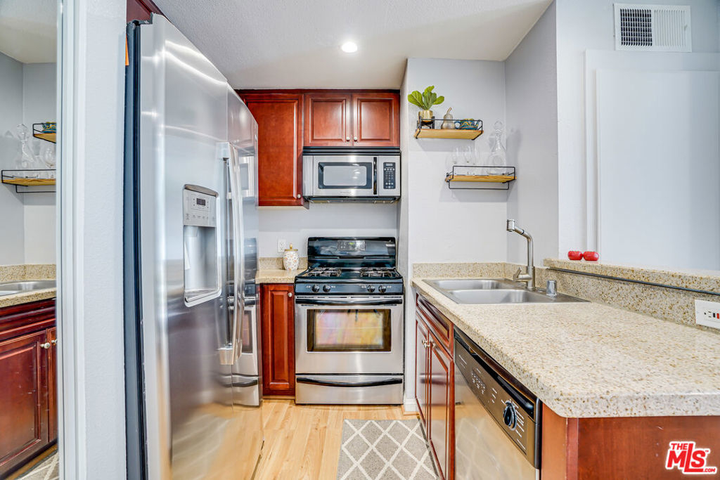 Welcome to a gorgeous 1 bedroom, 1 bath in resort style condo in the most sought-after resort style complex The Met in Warner Center. This amazing Light and bright top corner unit with high ceiling and updated kitchen with granite countertop and stainless steel appliance, living room with laminate floor and cozy fireplace open to the peaceful balcony with overview of the pool and trees. En-suite master bedroom with a lot of closet space, bathroom and large vanity. This unit is located in one of the best buildings in the complex, close to the main pool, clubhouse and main entrance. There are 2 parking spaces belonging to the unit, 1 covered underground parking space and one assigned parking outside with plenty of visitor parking for your guest. This resort style community offers 24 hours guard-gated, four heated swimming pools, spa, fitness center and six tennis courts also a few children's playground and indoor basketball and racquetball court. Met located in the heart of Warner Center close to freeway, shops and restaurants, Westfield Topanga mall and famous Village, Costco and a lot of entertainment centers. Hurry up before you miss this great opportunity.