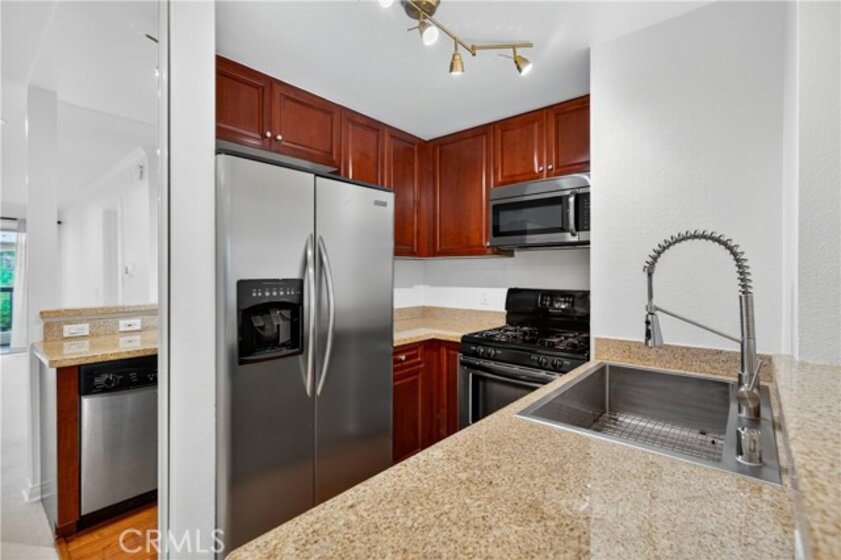 Step into this inviting, sun-drenched corner condo at The Met Warner Center, available for the first time in over a decade! Located in one of the community’s most desirable and peaceful buildings, this second-floor residence combines privacy, comfort, and resort-style amenities in one of the Woodland Hills most convenient locations. Inside, you’ll find a spacious, open layout filled with natural light and thoughtfully maintained details throughout. The living room features a cozy fireplace and opens to a private balcony overlooking the peaceful courtyard—perfect for relaxing mornings or quiet evenings. Upgrades include: interior paint, recessed lighting throughout, stylish West Elm curtain rods, kitchen stainless steel farmhouse sink and garbage disposal, microwave, brand new water heater, Nest thermostat, updated door handles, brand new carpet, and newly painted balcony flooring. The home also features central air and heat, ensuring year-round comfort. This unit includes two tandem parking spaces in a secure parking area and access to community laundry. At The Met, you’ll enjoy a resort-like lifestyle with four pools and spas, six tennis courts, indoor basketball and racquetball courts, fitness center, sauna and well maintained landscaping. The gated community features 24-hour security, on-site management, and a responsive maintenance team that keeps everything running smoothly. Ideally situated in the heart of Woodland Hills, this home is within walking distance to Trader Joe’s, Whole Foods, The Village, Westfield Topanga Mall, Ralphs, Sprouts, Target, Costco and numerous restaurants, gyms, and cafes. You’ll also love being steps away from Warner Center Park, home to holiday fireworks, summer concerts, and year-round community events—a vibrant neighborhood hub that brings people together. With easy access to the 101 freeway and exciting new developments nearby like the Rams practice field and upcoming hotels and shops, this area continues to grow in appeal and long-term value. Lovingly cared for since 2014, this home offers a wonderful balance of style, convenience, and comfort—a rare opportunity to own a bright, corner retreat in one of the Valley’s most desirable gated communities.