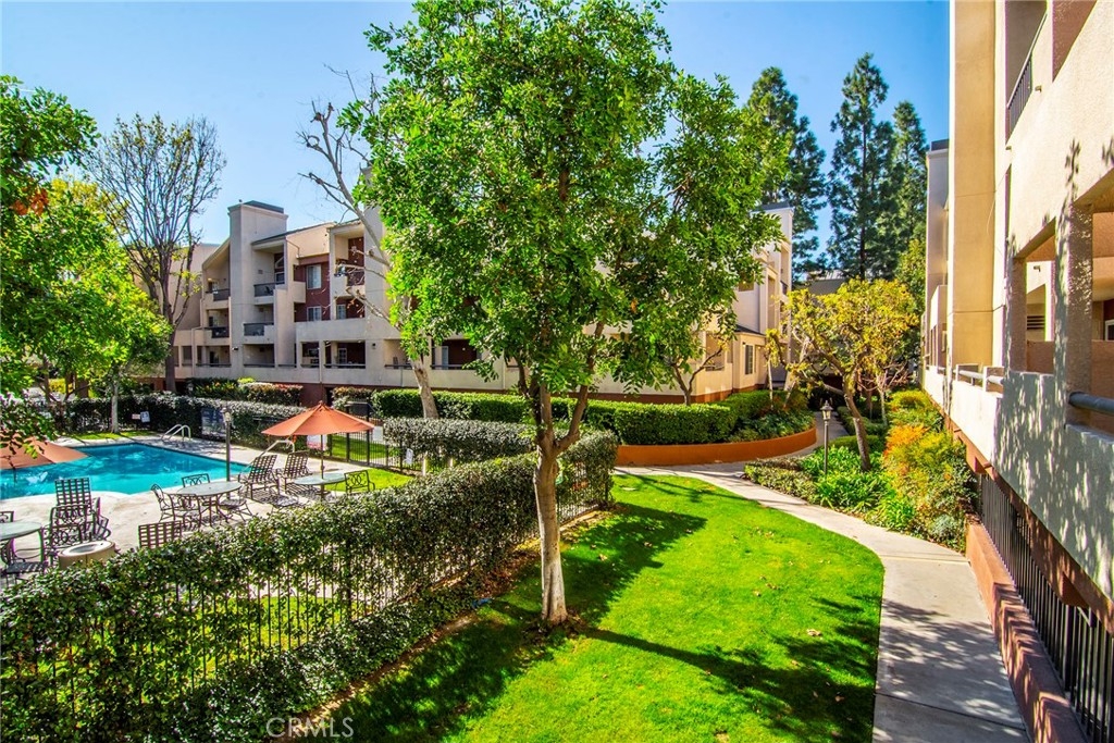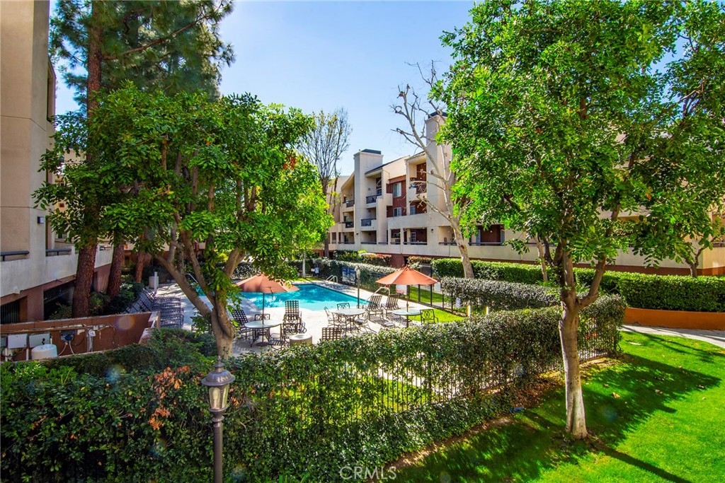 Beautiful unit in desirable The Met community in prestigious Warner Center. This top floor, one bedroom, one bathroom condo with high ceilings, open floor plan is light, airy and feels larger than official sq footage. Spacious living room with a nice fireplace and access to impressive balcony, well appointed kitchen, good size bedroom with attached bathroom, 2 parking spots in community garage. And all that in the great, quiet location within the complex. Amazing gated community with 24 hour live guard and all possible amenities: several pools, SPA, sauna, tennis courts, Racquetball court, Basketball court, state of the art Fitness Center, lush landscaping and much more. Resort style living and yet just minutes away from all activities Warner Center has to offer - shopping, entertainment and fine dining. Prime area - close to The Village, Topanga Mall, parks, public transportation, easy access to 101 freeway.