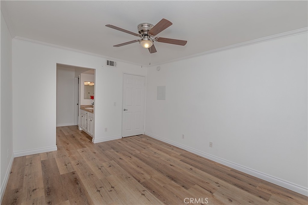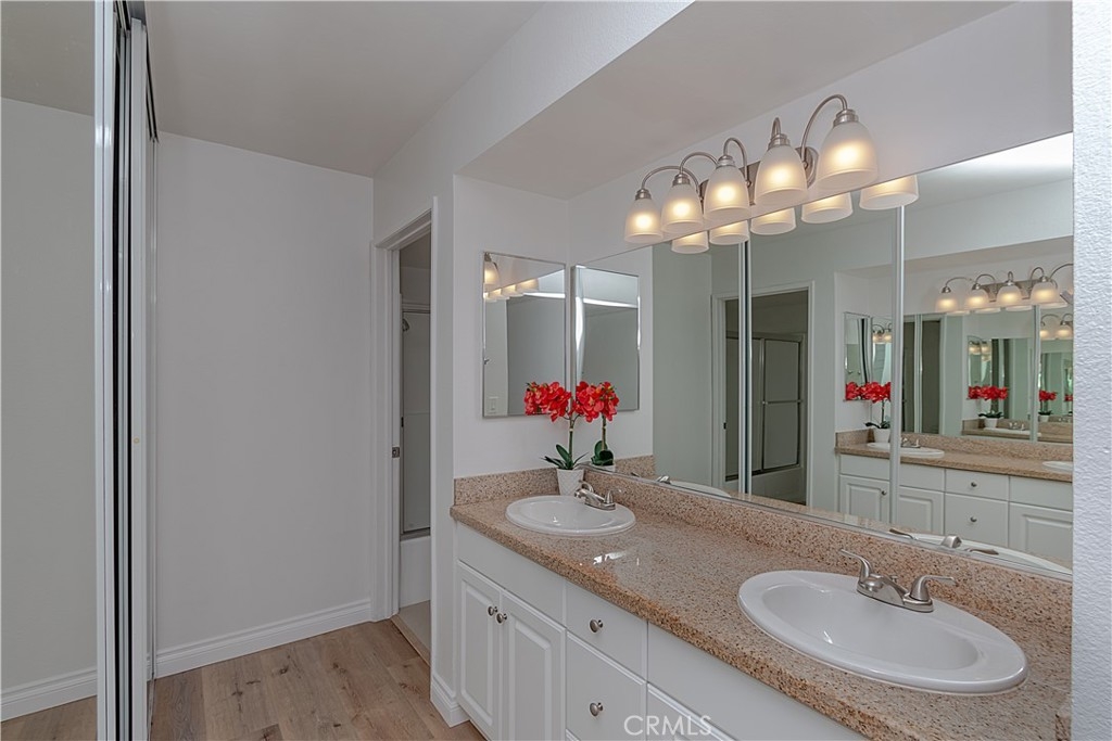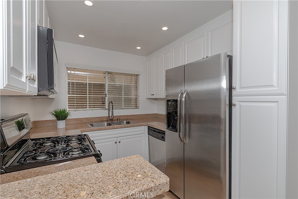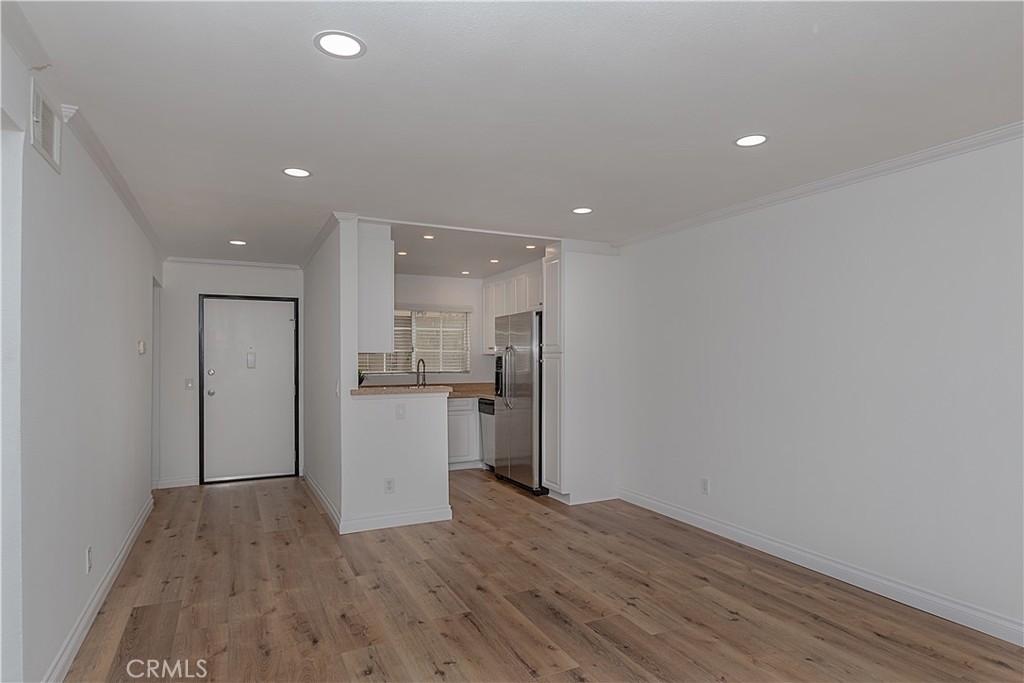 Welcome to resort style living in The Met Woodland Hills. This beautifully updated 2 bedroom/2 bath unit new waterproof vinyl plank flooring throughout (only allowed on the first floor), recessed lighting, crown molding, baseboards and ample closet space. The unit received not only new flooring but new paint walls and interior doors, new light fixtures and recessed lights, new microwave, all faucets and more. The spacious living room features a cozy fireplace with new mantle and mosaic & leads to the oversized private balcony. The kitchen boasts stainless steel appliances including built-in microwave, granite counter top, beautiful white cabinets, and stainless steel sink. The master suite features mirrored wardrobe and en suite bathroom with dual sinks, and granite counters. Unit comes with front load washer/dryer hidden tastefully behind doors and TV above fire place. Unit is located in building #12 which is next to guarded gate biggest pool and tennis courts and is distant from the 101 Fwy. Balcony view overlooks the complex interior green grounds and parking. (Unit is NOT overlooking on to Canoga Ave.) Parking is in community garage accessible from elevator and it's 2 car tandem parking. Enjoy the many amenities in this 24-hour guard gated community such as 4 pools/spas, 2 saunas, 6 tennis courts, 2 racquetball courts, 2 playgrounds, gym, and clubhouse with pool table. Conveniently located to 101 freeway, public transportation, shopping, restaurants, movie theaters, parks, and The Village/Westfield Mall.