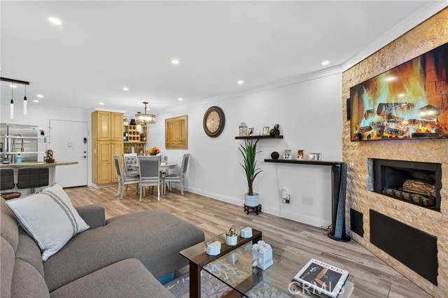 The best deal at the Met! Welcome to this beautifully updated condo at The Met, showcasing over $25,000 in thoughtful upgrades. Step inside to discover a bright, open layout enhanced by new recessed lighting, fresh paint, and brand-new flooring that flows seamlessly throughout. The spacious living area centers around a cozy gas fireplace, opening to a private balcony perfect for morning coffee or evening relaxation. The kitchen features updated finishes and stainless steel appliances, blending functionality with style. A completely new HVAC system ensures year-round comfort, while the modernized bathroom adds a touch of spa-like appeal. Enjoy the convenience of an assigned parking space in the secure gated garage and access to The Met’s resort-style amenities—including multiple pools and spas, lighted tennis courts, a fitness center, sauna, indoor basketball and racquetball courts, and beautifully landscaped common areas. With 24-hour security and controlled access, peace of mind comes standard. Situated in the heart of Warner Center, this move-in-ready residence offers effortless access to Westfield Topanga, The Village, Whole Foods, and the area’s best parks, dining, and entertainment. With its modern upgrades, prime location, and turnkey appeal, this home is the perfect blend of comfort and convenience.