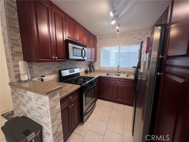 Ground-Floor Condo at the MET with Spacious Patio and Southern Exposure Welcome to your new condo that basks in ample sunlight throughout the day, thanks to the southern orientation of the generously sized patio—perfect for your outdoor enjoyment and relaxation. The well-equipped kitchen showcases granite countertops, stainless steel appliances—including a counter-depth refrigerator—and a gorgeous, renovated backsplash. The Italian Porcelain floor tiles adorning the entry, living room, and dining area are complemented by plantation shutters, a stone fireplace, and custom living room lights. Additionally, the convenience of an in-unit washer and dryer enhances your ease of living. The master bedroom features an upgraded bathroom, adding a touch of luxury to your private retreat. This unit is situated in the most private building of the complex and boasts its own gate for added exclusivity. The air conditioning and water heater were fully replaced in 2021, ensuring modern comfort and efficiency. The MET offers a secure, well-guarded, and gated community with an array of amenities including six well-lit tennis courts, a comprehensive fitness center, racquetball and indoor basketball courts, as well as multiple pools and spas. A stone’s throw from the vibrant Westfield Topanga Village and Social for shopping, dining, and entertainment, alongside nearby parks in the Warner Center area, residents can enjoy the epitome of resort-style living at The MET!