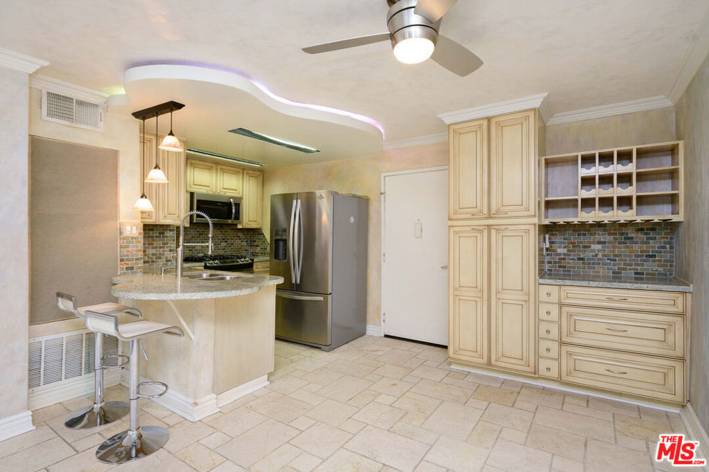 Light and bright one bedroom one bathroom condo in a private and quiet setting. Features include recessed lighting throughout, a fireplace, private balcony, built in bar area, and a private master suite. The met, situated in the highly south after Warner Center, is an exclusive guard gated community spread accross 26 acres of verdant grounds. The community features resort-style amenities including four pools, state of the art fitness center, six fully lit North/South tennis courts, children's playground, expansive pool deck, infoor basketball court and racquetball court all while being minutes away from local shopping, dining, and entertaining.