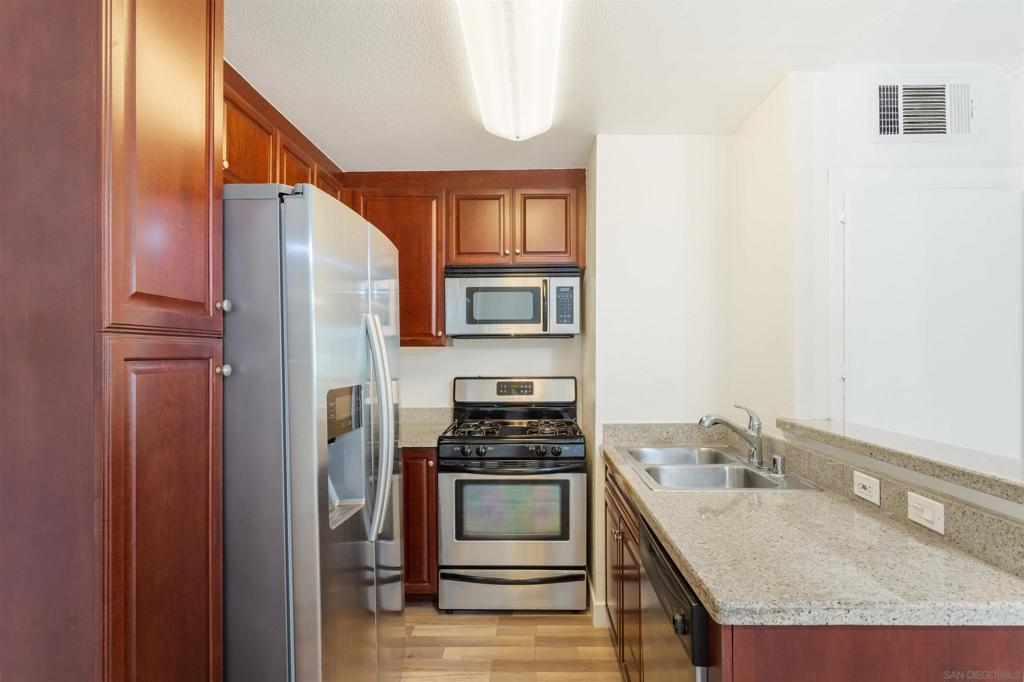 Welcome to resort-style living at the prestigious Met Condominiums in Woodland Hills. This exquisite condo offers an open-floorplan layout that seamlessly integrates the kitchen, living room, and dining area, creating a spacious and inviting atmosphere. The kitchen boasts granite countertops, adding a touch of elegance. Relax and enjoy the sunshine on the charming balcony or cozy up by the fireplace on cooler evenings. The Met Condominiums is a guard-gated community spanning 26 acres of lush landscaping, creating a private oasis-like setting and offers amazing amenities. Perfectly located near Warner Center, you'll have a plethora of dining, shopping, theater, and entertainment options just moments away. Don't miss your chance to own this exceptional condo and embrace a lifestyle of comfort, convenience, and resort-style amenities.
