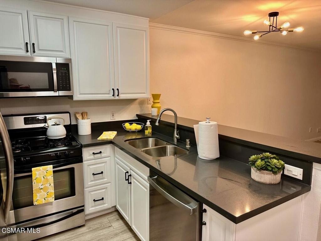 Welcome to the MET in Warner Center. Ideal Location for access to Warner Center shopping, entertainment, and amazing restaurants. This 2 BR + 2 bath home has been remodeled with gorgeous new baths, flooring and new carpet. Open floor plan with fireplace, view balcony, washer and dryer, and Kitchen w/ breakfast bar. The Met offers incredible Security,Resort Pool, Spa, Tennis Courts, professional gym, racquetball, and two covered parking spaces.Vacant and ready for quick escrow!!