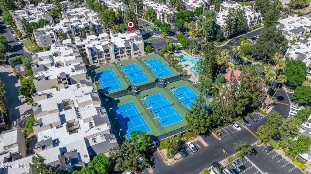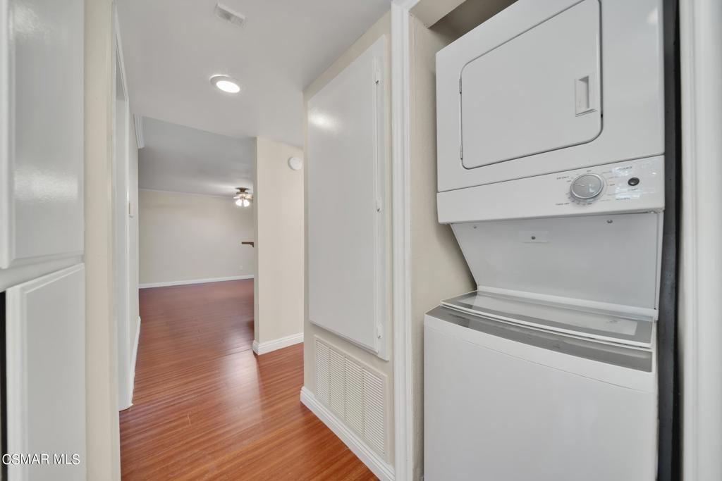 Welcome to the best location in the Met! This bright corner unit on the first floor is situated in the center of the community, right next to the pool and tennis court, with only one neighbor on one side and convenient access to the emergency stairs. Featuring a 3-bedroom, 2-bathroom floor plan with fresh paint, this home boasts wood flooring throughout and a modern kitchen with stainless steel appliances. The unit includes a stackable washer and dryer for added convenience. All bedrooms have no common walls, ensuring privacy. Two bedrooms use a hallway bathroom, while the spacious en-suite primary bedroom offers a private balcony. Don't miss this opportunity to own a resort-style home in a prime location!