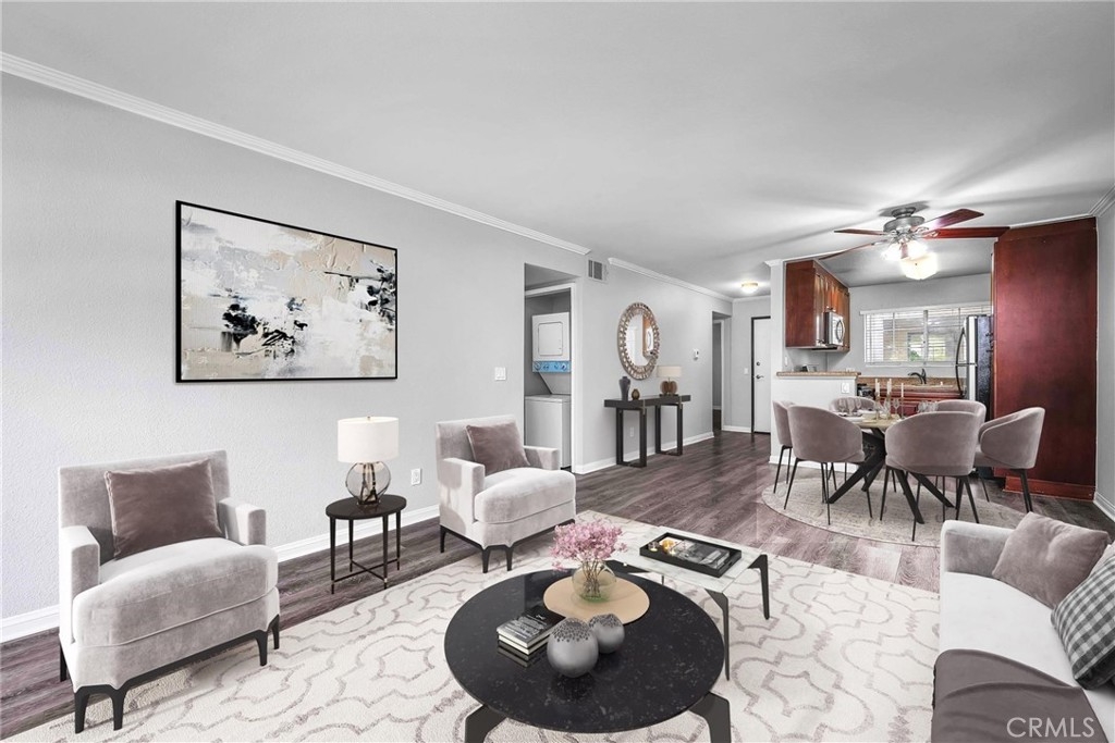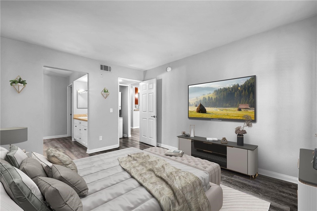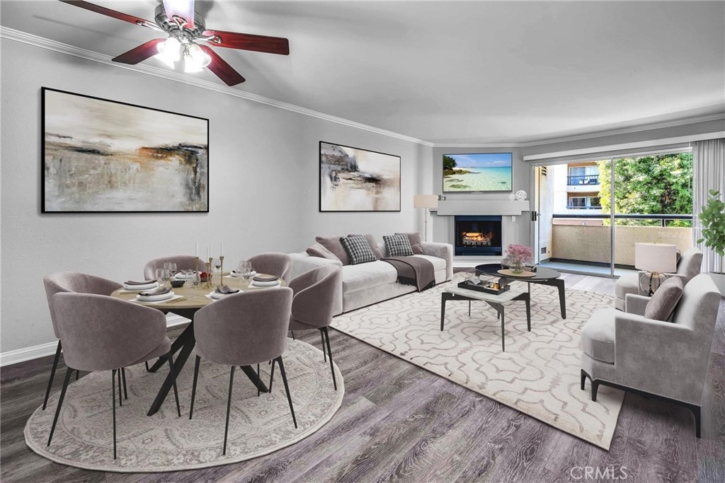 ***PRICE IMPROVEMENT***Updated, turn key, 2 bedrooms + 2 bathrooms at the The Met, a guard gated secured community served by an elevator, located in prime Warner Center neighborhood of Woodland Hills. As you enter, you are greeted by a large living cum dining room with a fireplace & access to a private balcony. Well appointed kitchen opens up to an expansive living room/ dining area. One bedroom with a dual closet, glass sliding doors is located to the right of entry with a full hallway bath equipped with a washlet toilet and a coat closet. Primary bedroom has an attached full bath with double vanity sinks, 2 large closets conveniently located in the bathroom. Laundry with washer /dryer is conveniently located across from the primary bedroom. Community Laundry is across the unit for washing larger items like blankets. There is extra storage space within the closet located in the balcony. Secured covered TANDEM Parking, spaces # 58 & 59 are located in the subterranean parking area with easy access. The Resort type community offers four swimming pools, spa, several lighted tennis courts, racquetball court, indoor basketball, gym and children playground. Close proximity to restaurants, transportation, "The Village", Topanga Mall, Warner Center Park, Whole Foods, Trader Joe's, Sprouts, Ralphs & Target and area freeways. HOA covers Earthquake Insurance, Tennis Courts, Pools /Spas, Gym /Ex Room, Clubhouse/ Recreation Room, Exterior Insurance, Trash, Sewer , Water, Playgrounds and maintenance of Common Areas. Unit has been Virtually Staged for imaging purposes. Non-warrantable condo, please check on financing options.