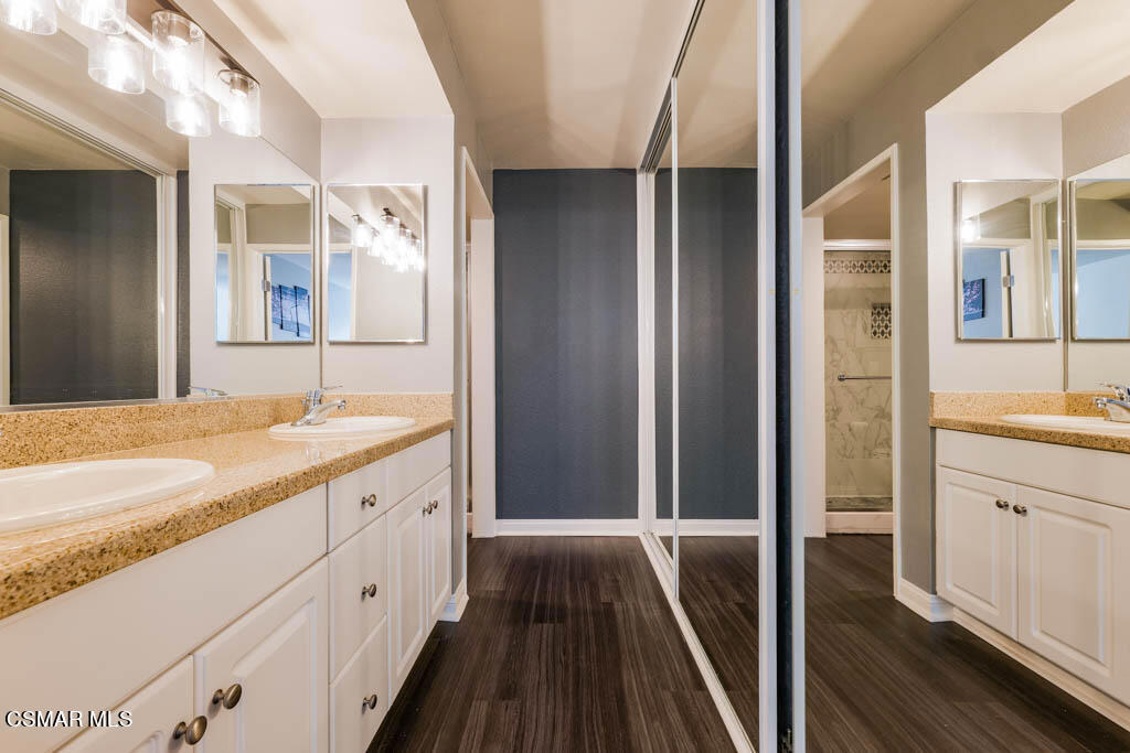 Welcome home to this gorgeous 2 bed + 2 bath updated and meticulously cared for condo. Centrally located in one of the most coveted buildings in the Met, this serene oasis boasts resort style amenities, and a prestigious 24-hr guard gated community located in the heart of Woodland Hills at Warner Center. This open floorpan features a modern kitchen overlooking the dining room with a new heat and scratch resistant granite double sink to compliment the granite countertops and newer stainless steel appliances. Newer carpet and flooring throughout. Enjoy sipping your morning coffee or tea with views of the city off this charming private balcony with plenty of sunlight. The grand primary suite offers a large window with treetop view and lets in relaxing natural sunlight. The primary bathroom includes a double sink with gorgeous remodeled shower and a mirrored walk in closet-lined hallway. Secondary bedroom suite has double mirrored wall closets and is adjacent to secondary bathroom. Newer stackable washer/dryer area is conveniently located between the 2 bedroom suites. Recently replaced and updated are the water heater, AC, garbage disposal, master toilet, bedroom fans, lighting fixtures and paint.Parking is conveniently located directly below in gated garage. Resort-like amenities Include 24 Hour Security With A Guarded Gate, Well-Manicured Gardens & Green Belts, 4 Large Sparkling Pool With Cabanas & Wi-Fi, 3 Other Charming Small Pools, Inviting Spas, 6 Lighted Tennis Courts, State Of The Art Fitness Center, Racquetball Court, Basketball Court, Sauna and Clubhouse. Incredible Location close to the central pool and tennis courts, walking distance to amazing playground, grassy area and moments from Westfield Topanga, The Village, Costco, Whole Foods, Trader Joe's, Excellent Restaurants and Ventura Blvd.