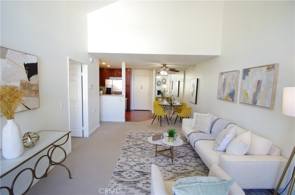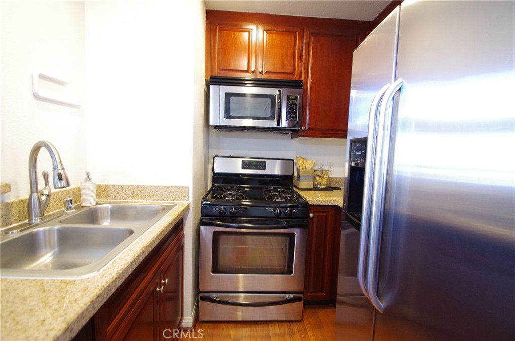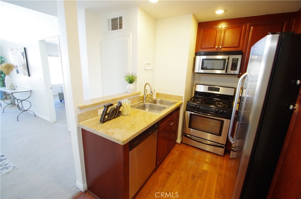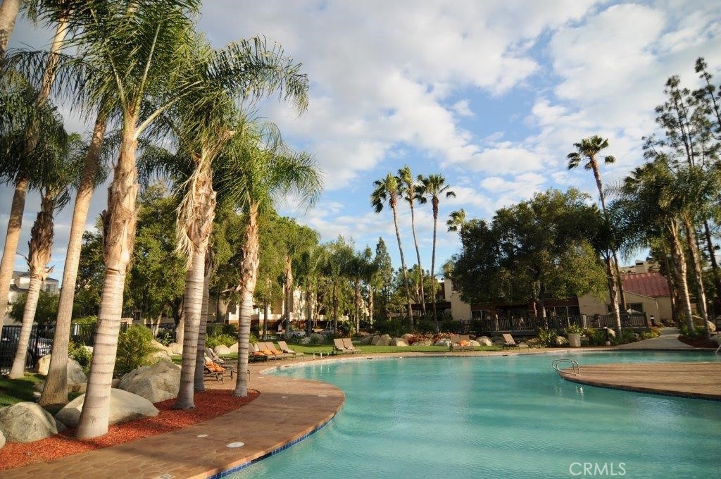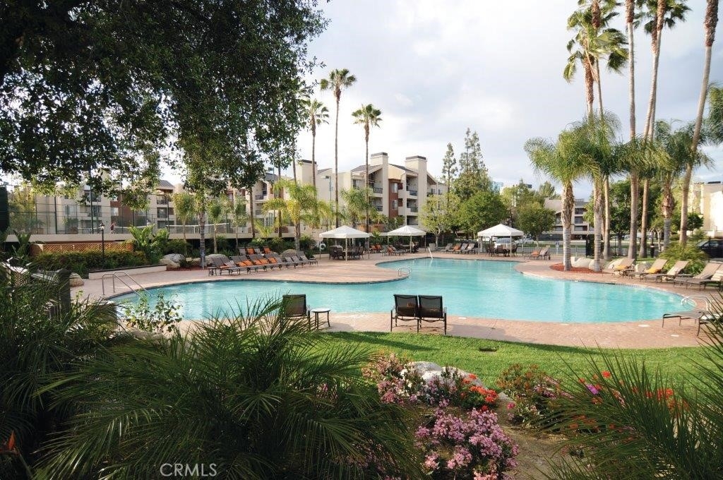 This luxury TOP FLOOR, 1 bedroom condo is settled behind the prestigious gates of The Met guard gated community in the heart of Warner Center. This unit is located in the center of the community in building 8, near the pool and tennis court. The third floor unit boasts a light and bright interior with vaulted ceilings and a neutral, fresh aesthetic. The kitchen features granite countertops, Cherrywood cabinets, updated lighting, and stainless appliances. The living room has a cozy gas fireplace and a private balcony. There is a dining area with mirrored closet doors. The bathroom has a beautiful vanity and mirrored closet doors. The bedroom is large enough for a Cal King bed plus a work station/ desk area and it has mirrored closet doors. The Met at Warner Center is a resort-like community that boasts several community pools, spa, tennis court, racquetball court, gym, guard gate, and 24/7 security patrols. The unit comes with 2 underground tandem parking spaces. The Met’s prime Woodland Hills location places it near fabulous shopping and entertainment at The Village, Warner Center, is walking distance to Ventura Blvd, grocery stores, and has close freeway access.