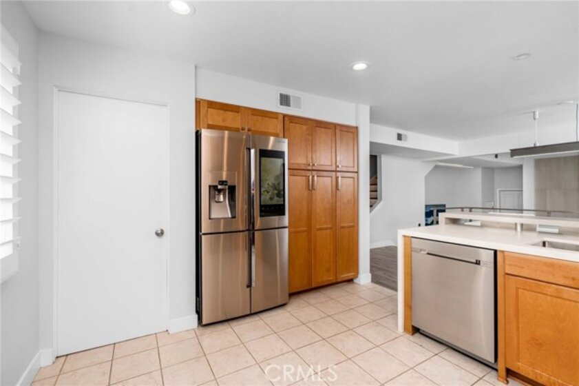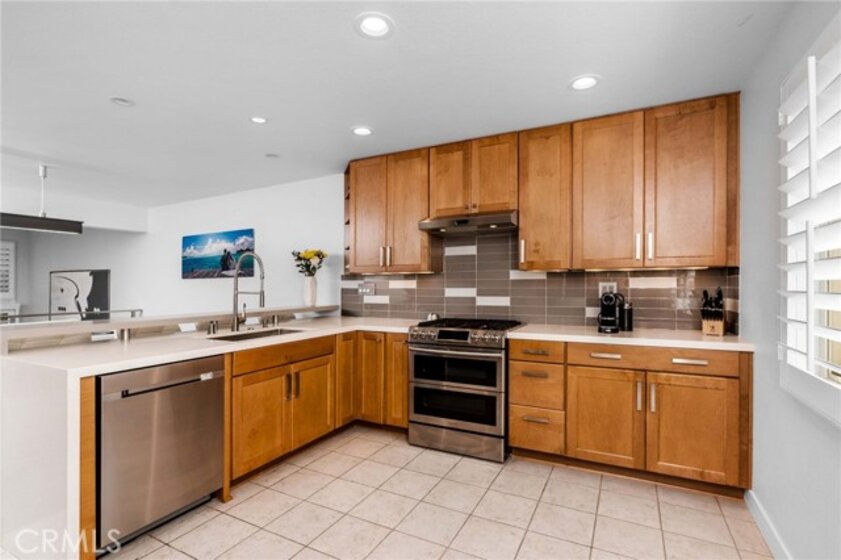 Luxuriously remodeled townhouse located in the upscale Villa Granada community in the heart of Woodland Hills. This designer townhouse welcomes you with high ceilings and open floorplan. The bright Living room features a unique custom ceiling light fixture, a fireplace with imported tiles which stretches all the way to the ceiling and large glass sliding door overlooking the lush private yard with built-in seating perfect for entertaining. The large cook’s kitchen offers a modern designed quartz countertop with a split floating serving counter and equipped with newer stainless-steel appliances all open to dining area. The powder room is appointed with imported 3D tiles giving it that opulent feel. The oversized main bedroom suite offers 2 closets and a custom barn door to the tastefully remolded bathroom with floor to ceiling tiles, dual-sink vanity, and a frameless glass shower enclosure. The second bedroom with a double door entry has a wall-to-wall closet with sliding glass door overlooking the serene treetops and the community pool. Second bathroom offers a soaking tub. There is a separate laundry room with wall cabinets for storage. Other features include direct access 2-car garage, in-wall LED strip lighting, solid wood steps, custom wire railings, home smart features such as Nest thermostat & camera doorbell. This gem is located just minutes away from the Village, the Topanga mall, Amazon Fresh, and an array of fine dining options.