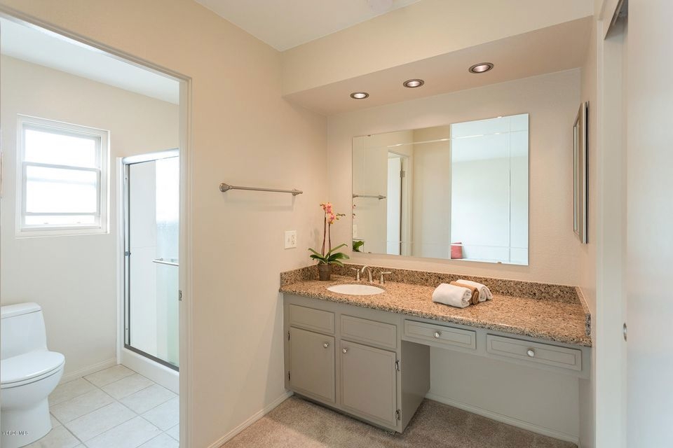 Luxury living in the heart of Woodland Hills. Welcome Home to this stunning upscale COMPLETELY remodeled Villa Granada- Walking distance to the Village with its sumptuous dining and entertainment. High ceilings, double pane windows and an open floor plan make it light and bright. The fireplace and private patio with electricity and gas hook up, create an ideal atmosphere for entertaining. The seller chose high end fixtures for the remodel. Gorgeous granite in the kitchen and baths. Custom Norcraft cabinets are self closing. Matching GE Profile Appliances include a chef's Gas Stove with 4 burners and a 5th burner or grill option, microwave refrigerator and dishwasher, Fisher Paykel washer and gas dryer stay with the home. Pride of ownership is obvious in the exquisite condition of this homeBoth bedrooms are over sized. The Master has its own dressing area and two closets. The second bedroom has a double door entry a lovely view of the tree tops and a very large closet. There Shaw wood-grain floors in the second bedroom and in the great room. Mohawk smart strand carpet is in the dining room master hallway and stairs. The baths and kitchen and laundry room ( which is a separate room) feature high end Venetian Stone ceramic floor tiles from Italy.The house is wired with an ADT security system which can be ''armed guard responsive'' for a monthly fee. There is also a whole house water filtration system, Central heat and Air and the 40 gal Water heater has a flood-stop automatic sensor for leak protection.