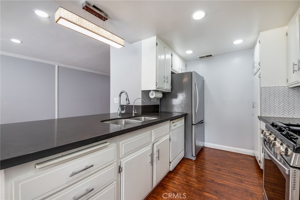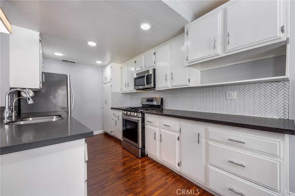 BACK ON THE MARKET!! NO FAULT TO THE SELLER, BUYER DIDN'T PERFORM! Welcome to this amazing Villa Granada 2 bedroom and 2.5 bathroom townhome adjacent to the Warner Center Village at Westfield Topanga! The unit?s location is located in the center of the community so you?re away from the street and have more space for your children to play in front of the home. Step inside to your own private patio and as you enter the home you are greeted with a fireplace and split-level living and dining area. Wood floors throughout! The formal dining room is large with an abundance of light, recessed lighting, and a remodeled ? guest bath on the first floor. The kitchen is perfect for entertaining! With quartz counters, newly refinished cabinets, stainless steel appliances, and lots of surface space. Upstairs contains a master suite that includes a walk-in closet. The shower area has custom tile work and a frameless shower door. The second bedroom is large with a fully remodeled ? bath. HOA includes cable, internet, water, exterior earthquake insurance & trash offering an excellent value. Features include: 2 car private garage with abundant built-in storage sheds built in, near the common area facilities. This townhome is located in a quiet neighborhood close to schools, shops, and restaurants like the new ?Topanga Social?, ?Amazon Fresh?, and many more! It's the perfect place to call home!