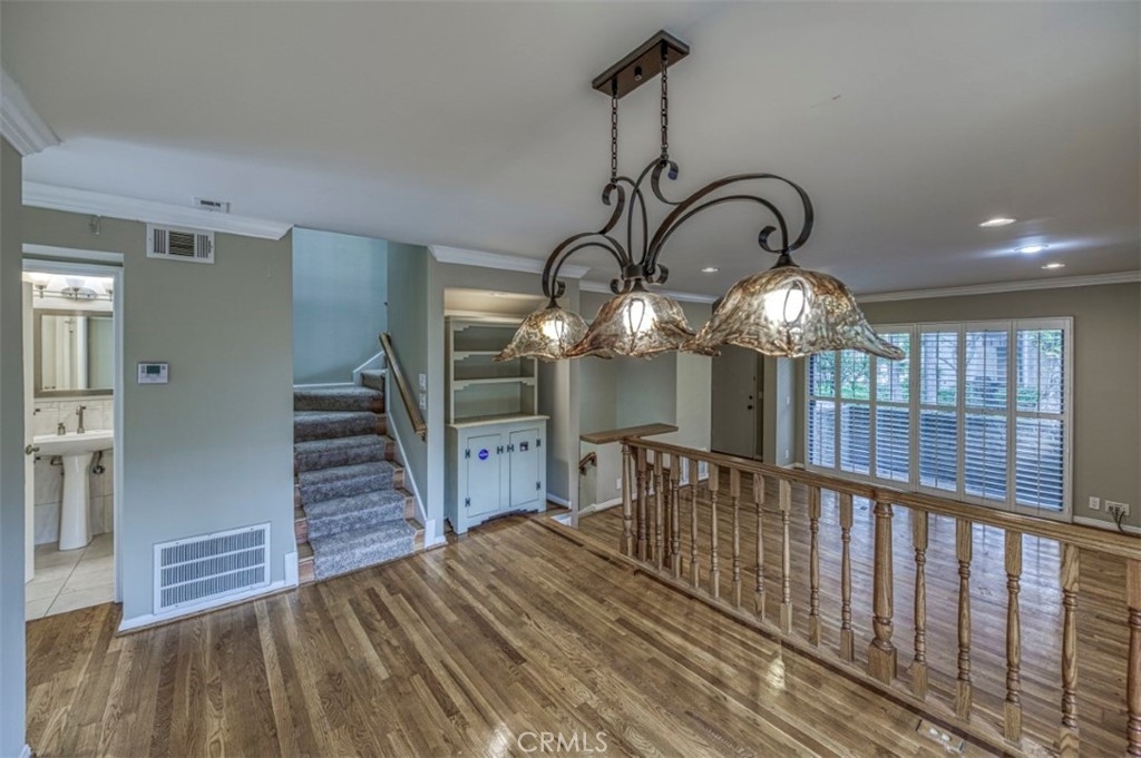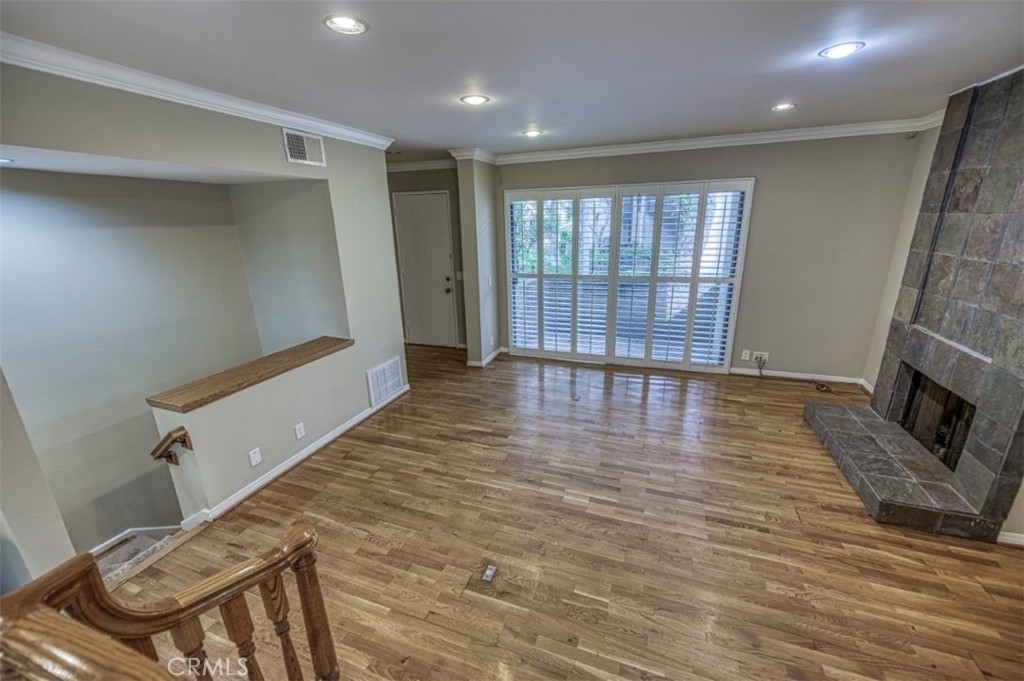 The highly desired Warner Village community in Woodland Hills has another townhome available for a fast sale. Located and off the beaten path with tranquil views of the lush community landscaping and running water features this Freshly painted townhome offers gleaming hardwood and custom tile flooring, crown moldings, plantation shutters, recessed lighting and much more... The open living room with cozy fireplace opens up to a front patio and 2nd level dining area with wood railing. The kitchen feature granite counters and back splash, mosaic walls and built-in stainless steal appliances. Baths have custom tile and granite counters. Large master bedroom with vaulted ceiling, balcony, wall to wall closets and a walk-in closet, private bath with his and hers sinks, shower with new glass shower door slider. Bonus room (in addition to 3 bedrooms upstairs) across from laundry closet on the garage floor. Community features include: tennis court, pool, lush landscaping, running water ponds and streams. Simply too much to mention. Must see property!