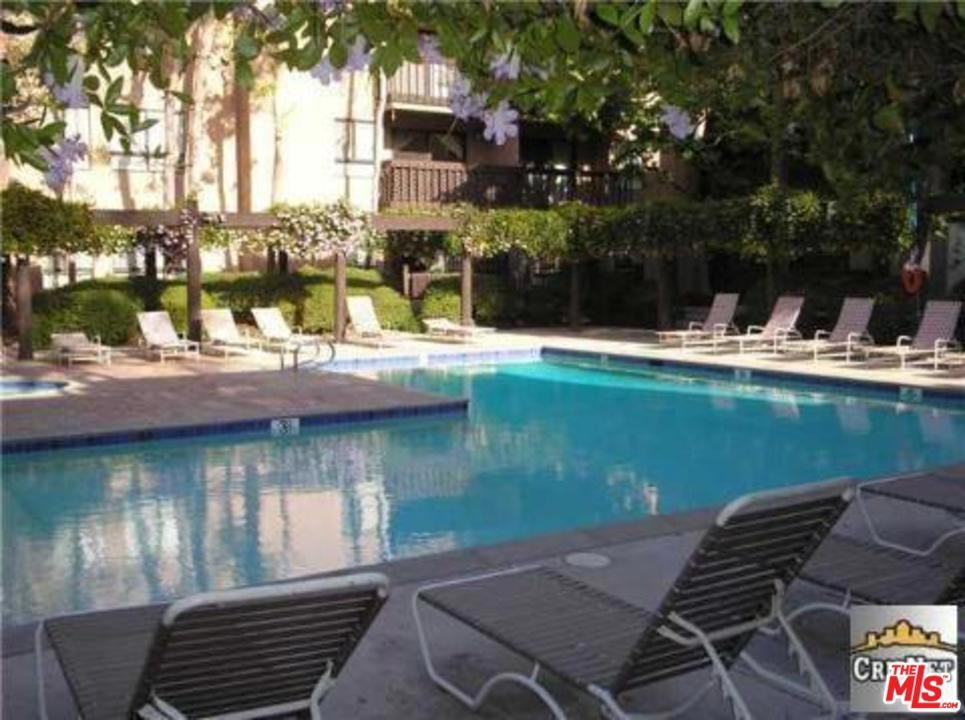 Gorgeous unit at a great value! This designer upgraded, top floor, ultra private, corner unit, in the best Woodland Hills location features new quartz counters, kitchen and bathroom cabinets, hardwood floors and spacious walk-in closet. The building has sparkling pool, spa, gym and recreation room. The unit comes with 2 side-by-side parking spaces.