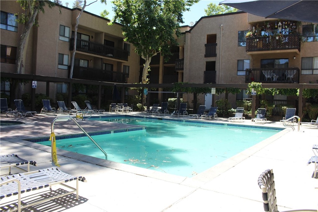 Top floor studio condo in the Warner West gated community in Woodland Hills! This front facing unit has a large balcony, open kitchen with newer countertops, breakfast bar and large studio with full bath This balcony has peek a boo view! The Warner West complex offers a swimming pool, multiple spas, Recreation Room, Sport Court and workout gym. Lots of open space and towering trees. Comes with one parking space and plenty of guest parking. The location offers all the best that Warner Center has to offer.... walking distance to Warner Center Park, The Village and Westfield Topanga mall to the north and plenty of shopping and eateries along Ventura Blvd to the south! Great location in the complex away from the freeway. Your HOA includes water, sewer, trash, gas and earthquake insurance.