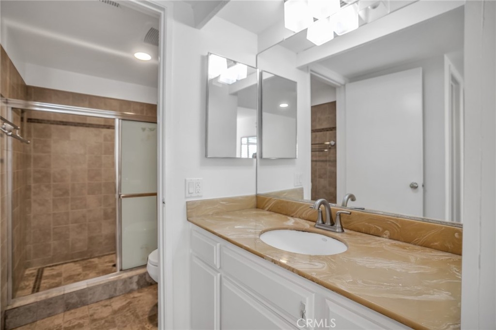 Opportunity knocking! Here is your chance to own a 2-bedroom, 2-bath condo in the heart of Woodland Hills for under $500K. Take advantage of the opportunity BEFORE the RAMS Stadium is constructed and price go way up! This first-floor corner unit is available in the sought-after Woodland Hills neighborhood. The condo, which shares only one wall with neighbors, serves as a fantastic starter home and has been well-loved and maintained by the current owner for the past 9 years. The kitchen was updated two years ago, featuring stainless steel appliances, and the unit boasts a new AC unit (2 years old) and updated flooring in most areas. Enjoy the spacious wrap-around balcony with light fixtures, a rare feature in the building. The primary bedroom is generously sized, complete with a walk-in closet and an attached private bath/shower. The second bedroom is also sizable and includes two closets. Additional highlights of the condo include beautiful plantation shutters, recessed lighting, and other charming touches that must be seen to be appreciated. The unit is conveniently located close to its two side-by-side parking spaces, the guest parking lot, as well as amenities like laundry facilities and trash disposal. The gated complex offers resort-style living with a pool surrounded by beautiful brickwork and lush landscaping. Residents can also take advantage of a spacious recreation room, a gym, an additional private jacuzzi, and a tennis court. Security is provided on-site, and the community features both gated access and gated parking for residents. The property is within walking distance of Warner Center, Westfield Topanga, Topanga Village outdoor mall, and Ventura Blvd restaurants and shopping. Live close to local events such as concerts in the park (also within walking distance) and fine dining. Experience the convenience of being centrally located to all that Woodland Hills has to offer, with easy access to Malibu beaches, the 101/405 freeways, hospitals, schools, hiking trails, and more. HOA fees cover gas, water, trash, and additional amenities!