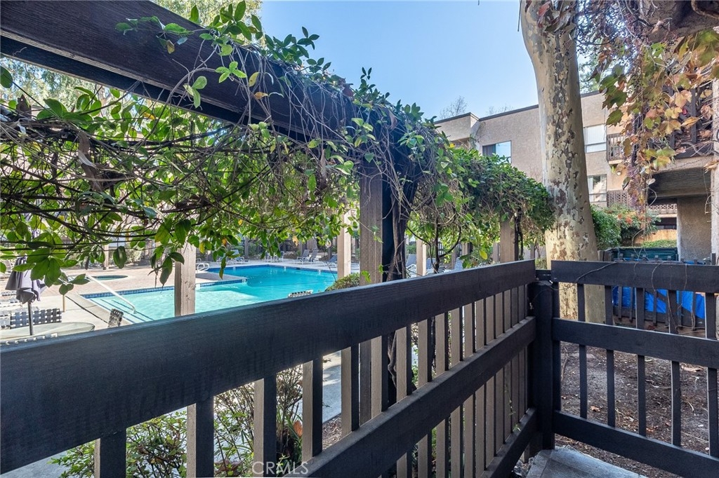 Tranquil Condo Living in Woodland Hills (near Topanga Canyon): Escape the ordinary and embrace a lifestyle of comfort, convenience, and California sunshine in this stunning 2-bedroom 2-bathroom Woodland Hills condo! Nestled in a vibrant community, the perfect blend of modern living and amenities, all within reach of the area's best shopping, dining, and entertainment. Commuting is a breeze with easy access to major freeways. There are two assigned parking spaces and ample guest parking. *Step Inside and Be Captivated: Sunlight streams through large windows illuminating the open and airy living spaces. Hardwood floors, granite countertops, recessed lighting offers inviting ambiance. Included smart thermostat with central air and heating keeps everyone comfortable year round. Come outside and enjoy the perfect location for lounging or entertaining guests on your vine-covered patio overlooking the sparkling community pool. Easy access to the pool/spa/gym directly from the patio gate. *A Delight for Cooking: The kitchen is well-equipped, featuring sleek granite bar-height countertops, modern stainless-steel range, and ample cabinet space with under cabinet lighting. *Rest and Relaxation: Retreat to your serene primary bedroom with soft natural light and plenty of room for a king-sized bed. The connected bathroom includes generous counter space and decorative fixtures. Massive vanity mirror. A spacious walk-in closet offers abundant storage, and an additional closet for even more storage. *The versatile second bedroom/office offers 2 mirrored closets and has its own connected bathroom. Perfect for guests, a child’s room, or creative studio. *Live the Resort Lifestyle: Dive into the refreshing community pool on a hot summer day, surrounded by lush landscaping and comfortable lounge chairs. Stay active in the fitness center, complete with cardio machines and weights. *This unique home is move in ready, a great opportunity!