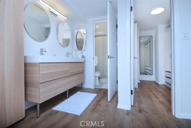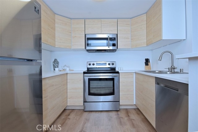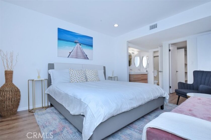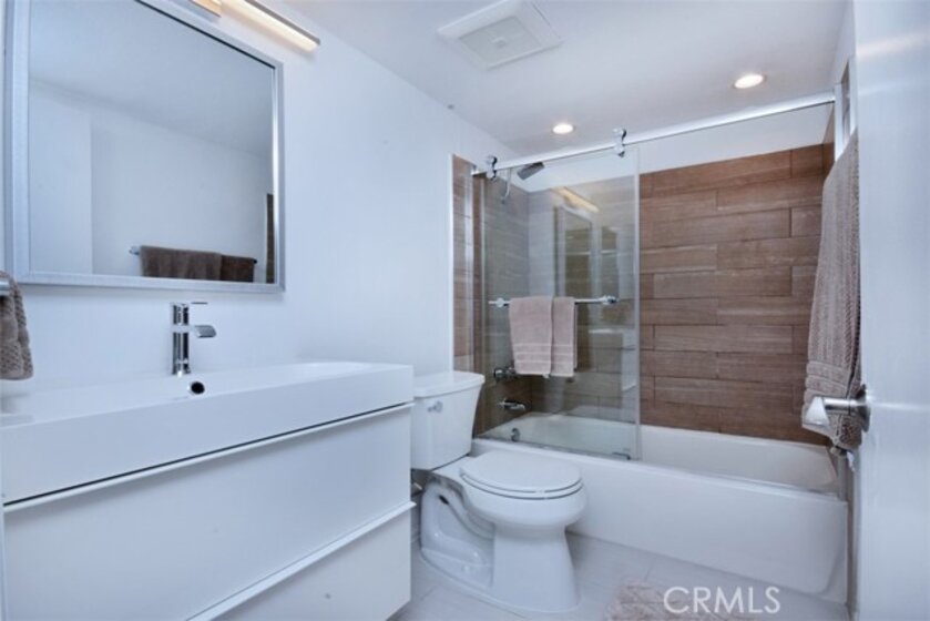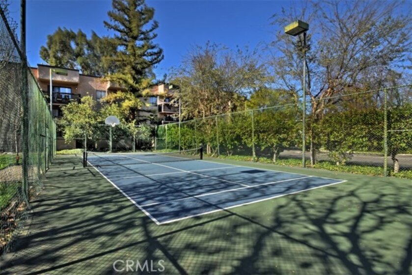 Welcome to this beautiful 2 bedroom, 2 bath condominium located in a prime area of Woodland Hills! This recently renovated end unit is situated on a desirable corner with a large balcony overlooking the greenery and tree lined courtyard. Enter into the light filled, spacious living room that offers an open floor plan and blends seamlessly with the dining area and kitchen. Enjoy cooking in this sleek and sophisticated remodeled kitchen with new countertops, new cabinets and stainless-steel appliances. Retreat to the primary bedroom with a large walk-in closet and newly updated en-suite bathroom that includes modern double sinks, a new shower with stylish new tile, new flooring and lighting. There is a sizable second bedroom with 2 custom closets that offer plenty of storage. The accessible second bathroom has also been updated complete with contemporary floating sink, new flooring, and new lighting. Other features include central air, newer flooring and recessed lighting throughout, and 2 assigned, side by side parking spaces. There is a resort style sparkling pool surrounded by luscious landscaping along with 2 separate spas, tennis court, gym, large recreation room and clubhouse. Gated community and conveniently located near Westfield Topanga & The Village, Warner Center Park and many great shops and restaurants on Ventura Blvd. Easy access to freeways and canyons make this property one of a kind!