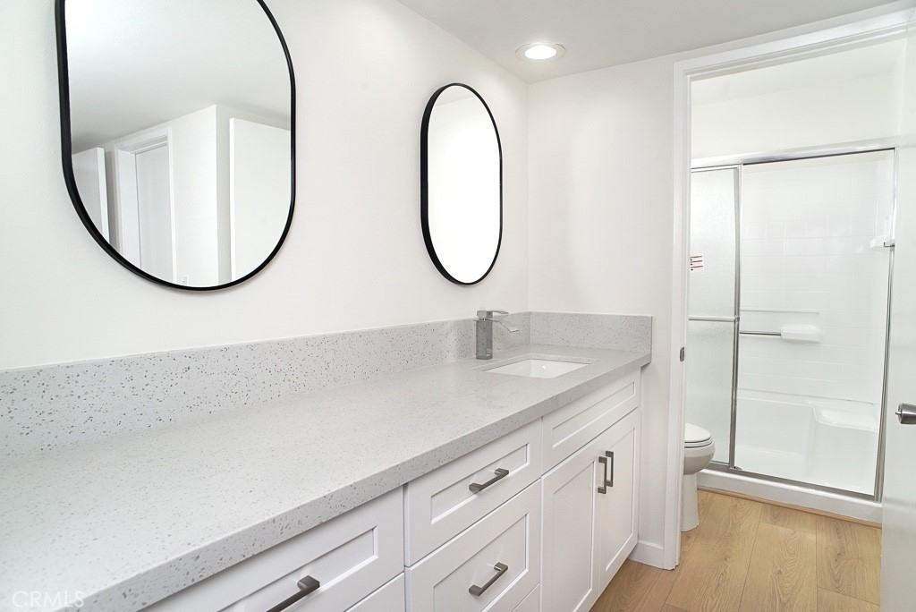 Location, location, location. Near Westfield Topanga Mall, Village, entertainment, restaurants and Ventura Blvd. Easy access to the freeway. This newly remodeled condominium is offering brand new, soft closing, kitchen cabinets with quartz countertops, stainless steel appliances. Brand new vanities in both bathrooms, new vinyl flooring throughout, recesses lighting, fresh paint, coupled with the amenities that the HOA is offering such as, 24/7 security, pool, lush greenery, tennis and basketball courts, spa, sauna, gym, recreation room and pool table. Two assigned side by side parking spaces few steps away from the unit.