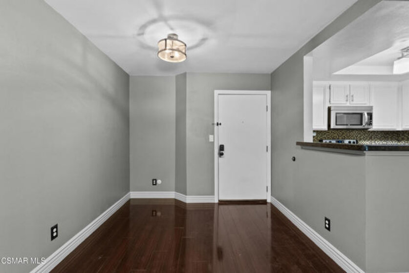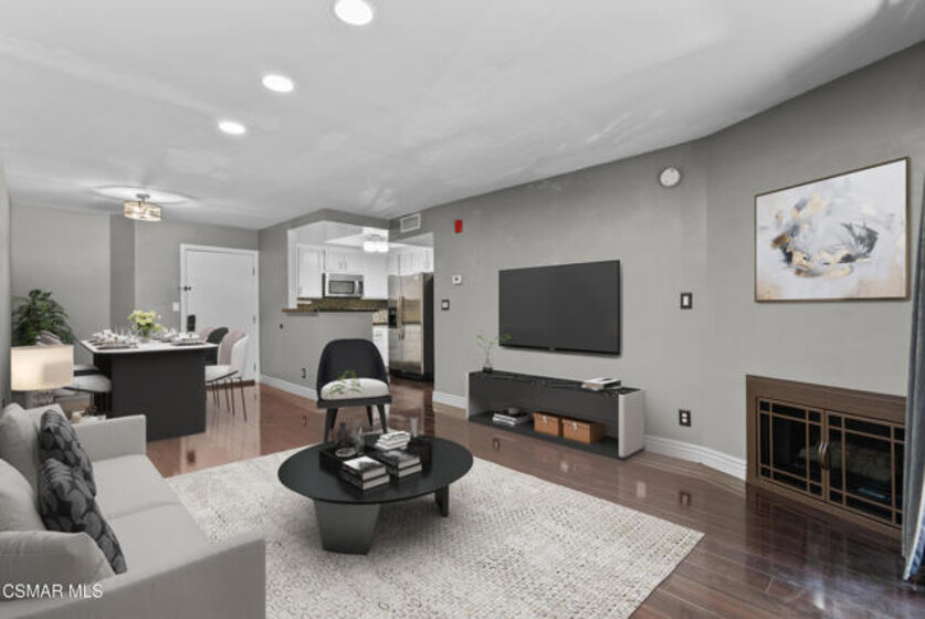 Experience the ultimate Warner Center lifestyle in this beautifully updated top-floor corner unit condo. Offering a rare blend of privacy and convenience, this 1-bedroom, 1-bathroom retreat boasts only one shared wall, ensuring a peaceful, quiet sanctuary in a prime location.Step inside to an airy, open-concept design where the living, dining, and open kitchen spaces merge seamlessly--perfect for entertaining. Enjoy designer touches like recessed lighting and custom window treatments. The spacious primary bedroom offers a true escape, featuring an additional soundproof window for ultimate quiet. For peak convenience, you'll find in-unit laundry with a portable washer and dryer.A truly exceptional feature: this condo includes two secure, assigned parking spots (one covered)--a premium rarity in this area.Your home extends beyond your walls with resort-style amenities: a sparkling pool, relaxing spas, a fitness center, recreation room, and both tennis and basketball courts.You can't beat the location! Perfectly positioned near Warner Center Park, premier shopping at Topanga Mall and The Village, and with effortless access to the 101 Freeway. Don't miss this move-in-ready gem that places dining, entertainment, and transit right at your fingertips!