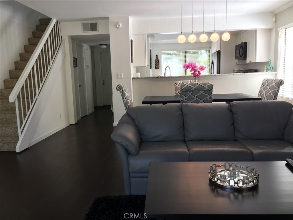 Welcome to Serenity! Highly upgraded Warner Woodlands Two, one common wall, best location in complex. Resort like lifestyle with Pool, Spa, Tennis Courts and Recreation Room. Remodeled throughout with great taste and design.. Enter to a spacious Living and Dining Room with wood flooring which leads to a large patio overlooking streaming water and lush landscape. Kitchen has been updated with Granite Counters, White Cabinets and abundance of storage. Large Master Bedroom with ensuite remodeled bath, mirrored wardrobes and Views! Laundry on 2nd floor, spacious secondary bedroom with updated bath.. Guest Bath, Light and bright throughout. Freshly Painted. Unit feels like a private home. 2 car garage. Near all Restaurants, newly expanded Westfield shopping and bus lines. A perfect unit in a highly desired complex.