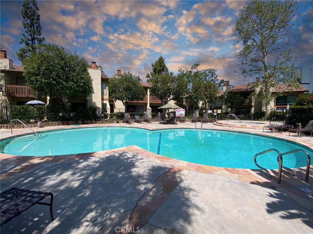 Welcome to peaceful and extraordinary living at coveted Warner Woodlands II. Beautiful 2 Bedroom and 1.5 Bath Townhome on a flawlessly maintained grounds offer a park-like setting with koi ponds, turtles, streams, bridges and lush landscape. The resort-like amenities include a gated pool and spa, gazebo, clubhouse, and newly refurbished tennis courts (April 2021) and a double car garage with built-in shelving for storage. Very close proximity to Warner Center Park, where on some weekends there are complementary movies, concerts, and the very popular July 4th firework display. Great floor plan with 2 beds and a bath on the second floor and half bath on the first. Spacious private patio and a second-floor balcony with the view to the tennis courts and lush landscapes. The beautiful kitchen with breakfast bar is a great setting for a small family. The master is spacious with a soaring ceiling and great closet space. In-unit washer and dryer is a great feature. Plenty of dedicated guest parking spaces very close to the residence. Close to the trendy Village shops and restaurants, Westfield Mall, Costco, and fine and casual dining. Four supermarkets all within five minutes' drive, and walking distance to Warner Center Transit Loop with convenient access to Commuter Express and the Orange Line. Monthly dues of $485 include water, yard, stream and pool maintenance as well as earthquake and fire insurance on building structures and common areas.