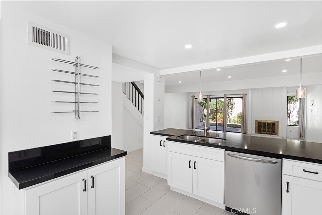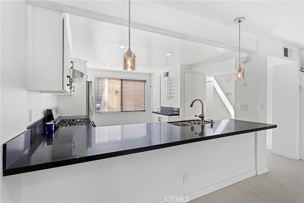 This beautifully updated 2-bedroom, 2.5-bathroom townhome is nestled in the highly desirable Warner Woodlands Two community in Warner Center, ideally located close to guest parking and in close proximity to Warner Center Park. Designed for stylish and comfortable living, this home boasts high ceilings, incredible natural light, and modern finishes throughout. Inviting an open-concept living area, where a cozy fireplace creates a warm ambiance, and sliding doors lead to a private outdoor patio—perfect for relaxing or entertaining. The remodeled kitchen features sleek black countertops and a breakfast bar seamlessly flowing into the dining space. A powder room bathroom is conveniently located downstairs. Upstairs, the primary suite is a serene retreat with cathedral ceilings, a private balcony, a custom-built closet. The en-suite bathroom features a sleek shower with travertine stone, offering style and functionality. A second patio upstairs enhances the airy, light-filled ambiance. The in-unit stackable laundry adds convenience, and beautiful flooring runs throughout the home. Additional highlights include a newer A/C, central heat and air, and a tankless water heater. The 2-car side-by-side garage provides ample parking and storage. Nestled in a resort-style community, enjoy access to a pool, spa, sauna, recreational room, tennis courts, and scenic paths with bridges, ponds, and lush landscaping. Ideally located in the heart of Warner Center, this home is just minutes from premier shopping, dining, and entertainment. HOA includes earthquake insurance, water, sewer, trash, and security patrol.