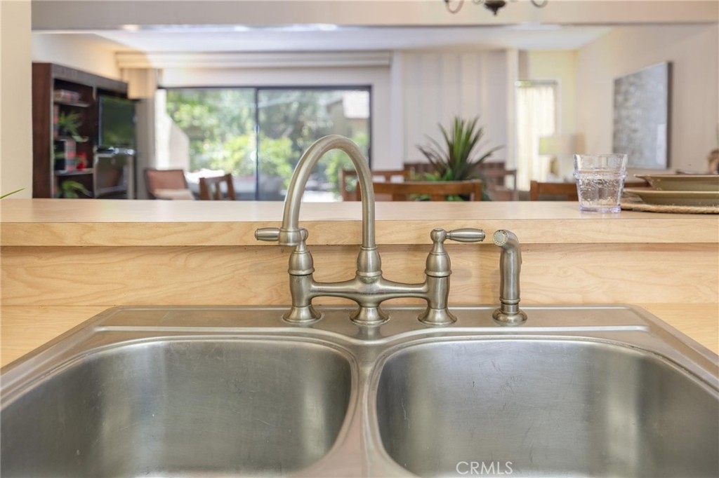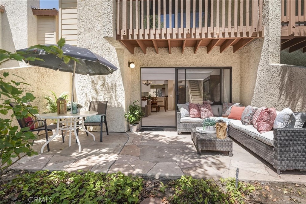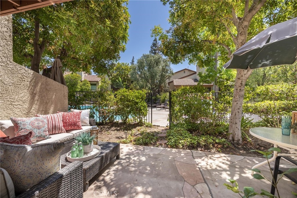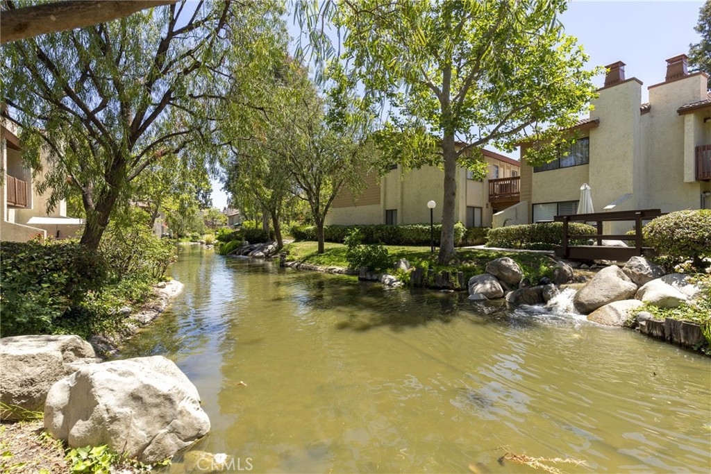 Beautiful Warner Woodland II townhome located in the heart of Woodland Hills. Enjoy a short walk to Warner Park with summer concerts and the trendy Village Shopping Center. Also a short distance to Costco, Westfield mall and restaurants. This lovely 2 bedroom 2 1/2 bath light and bright end unit has only one common wall. The open floor plan offers a large eat-in kitchen with butcher block counters and breakfast bar. The kitchen opens to a roomy dining area and spacious living room with fireplace. Walk out the sliding glass door to the oversized private patio with direct access to the pool, spa and gazebo. Downstairs powder room. Upstairs you will find the master with en-suite bath, wall to wall mirrored wardrobe closet and a walk-out balcony. A large secondary bedroom, laundry area and an additional full bath are also located upstairs. As you stroll through the beautifully maintained grounds of this lovely community you will find park-like settings with lush landscaping, streams, koi ponds and waterfalls. Also included in the resort style living is a large gated pool, spa, 2 newly refurbished lighted tennis courts, a two car detached garage and lots of guest parking spaces. HOA dues also include water and earthquake insurance.