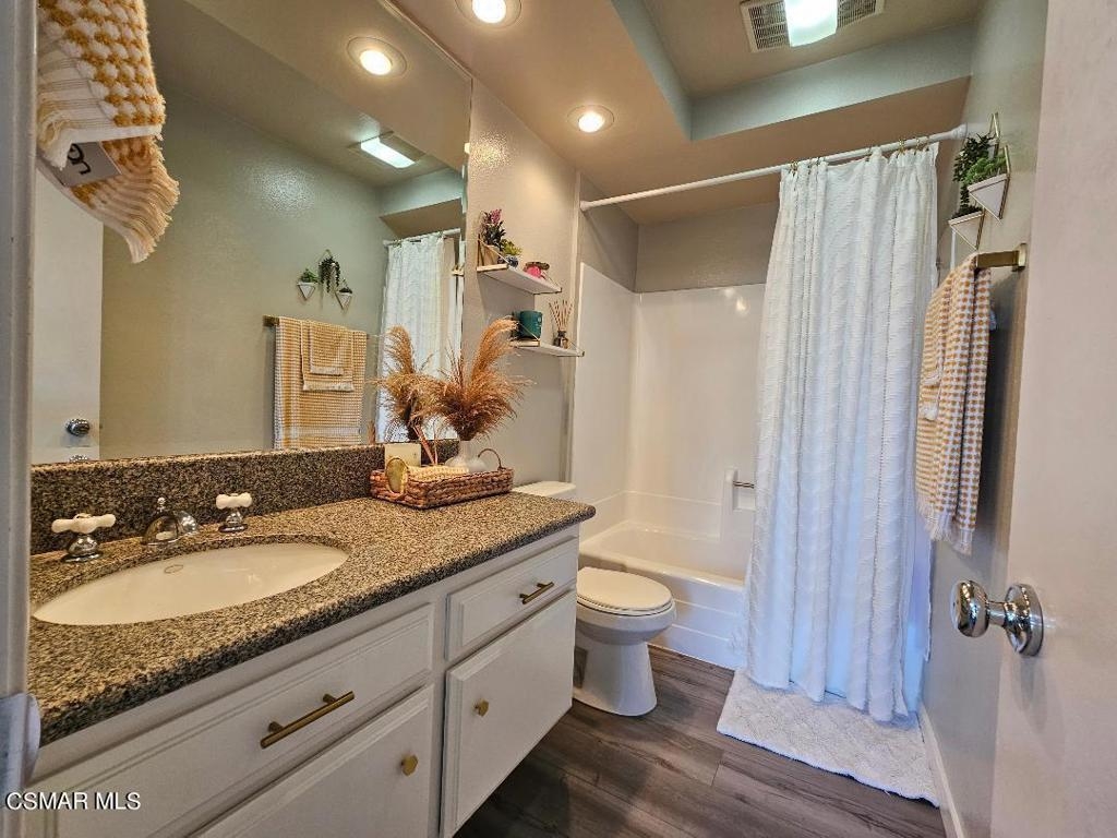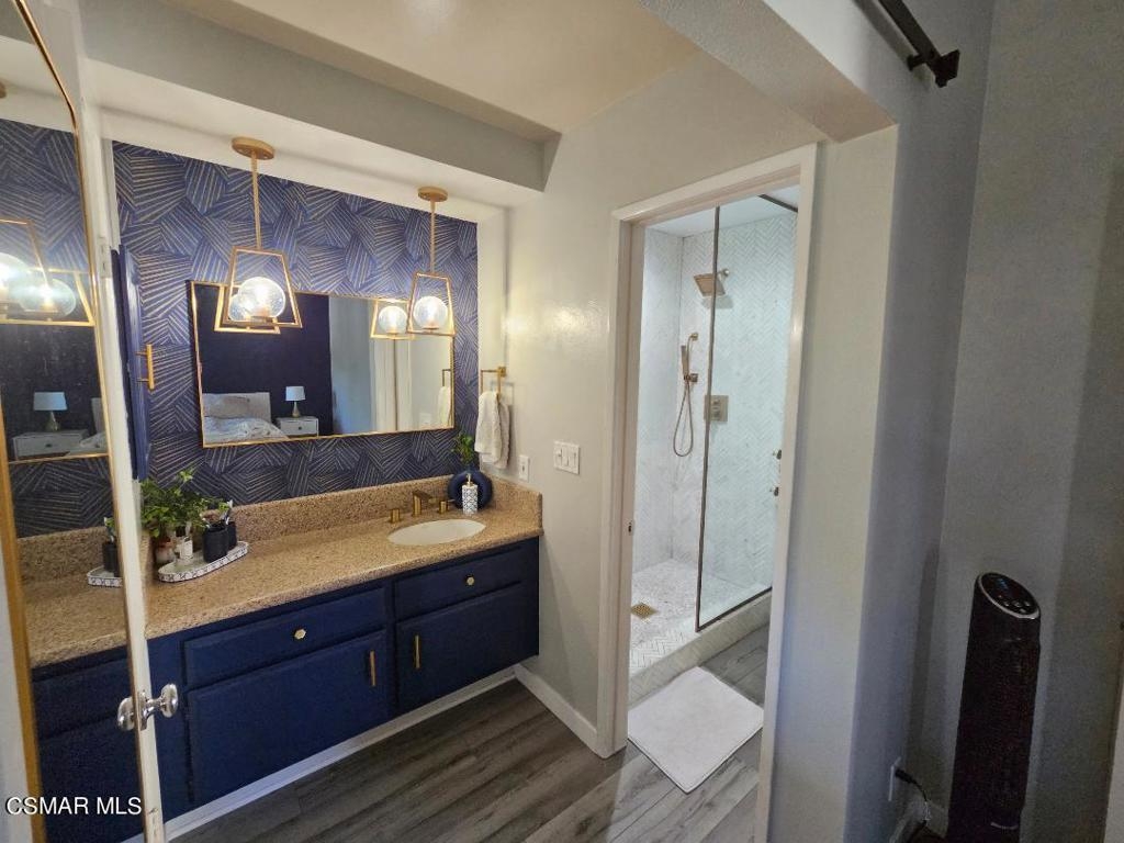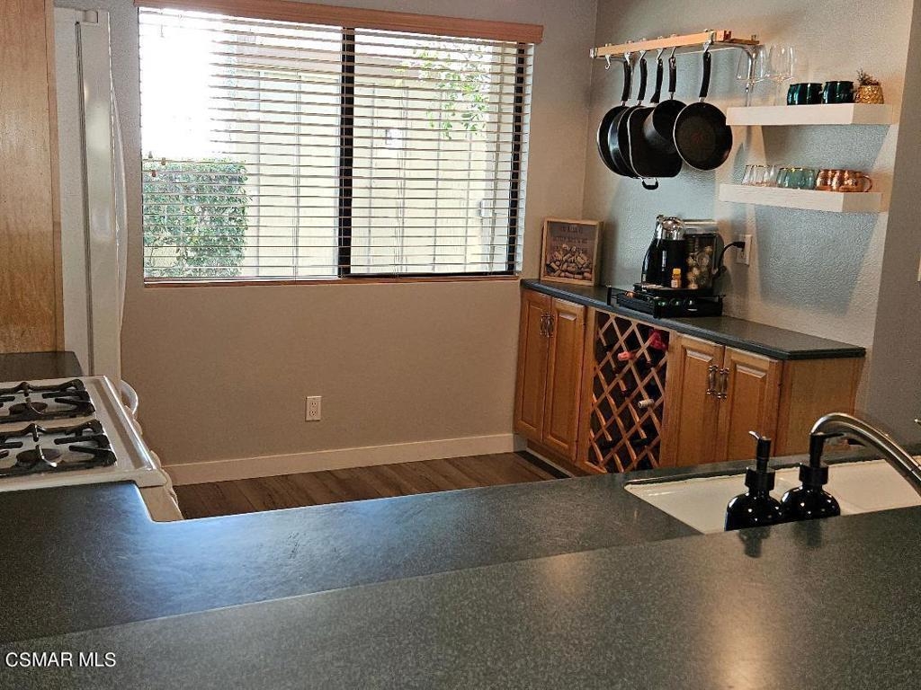 This highly desired location is close to the outdoor mall The Village, and the Topanga mall, and coming soon Rams practice facility, along with the highly desired end unit location. Offers recently remodeled 1390 sq. ft. 3 bedrooms, 2 full bath upstairs, 1/2 baths downstairs. You will enjoy new wood plank flooring throughout, including staircase with tile accent, new baseboards, master bathroom with a step-in shower covered with heiring bone tile complemented with brass fixtures, upgraded vanity, new faucet, and 2 pendant light fixtures. Along with a custom barn door providing optional separation from the primary bedroom. This complements the fabulous spacious kitchen with Corian countertops, wood cabinetry with built-in wine rack. Additionally, the primary bedroom offers a private balcony overlooking the pool, and one of the guest bedrooms with direct access to balcony overlooking the front entrance. Stackable washer / dryer conveniently located upstairs hallway. This beautiful place is waiting for you to call it home! Great schools, shopping, restaurants, recreational park nearby, and travel to Los Angeles with convenient freeway access and nearby orange line within short distance.