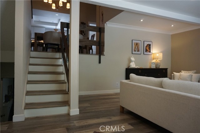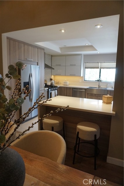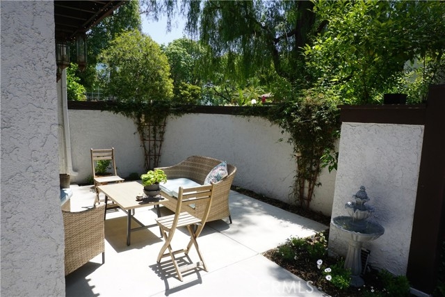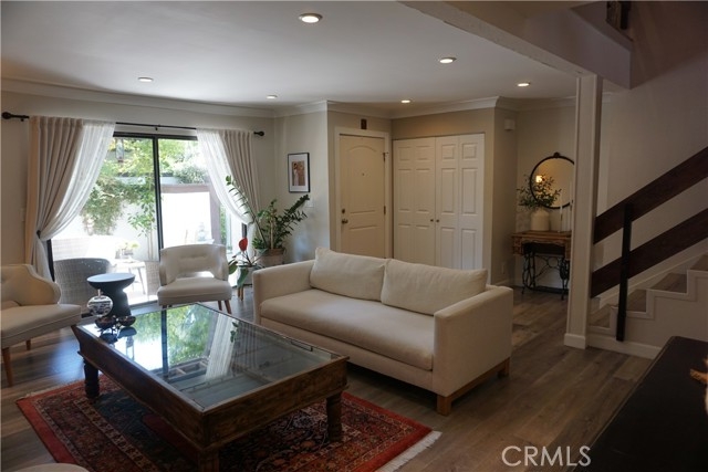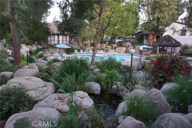 Great opportunity to own this beautiful Townhome in arguably the best location of Warner Center, a booming neighborhood. The first look greets you with a charming front patio. As you enter the front door, a spacious floorplan opens into the living room. Featuring newer premium hardwood floors, including stairs, modern handrails, and a fireplace. The second level includes a large dining area and fully updated custom-made kitchen with an island, high-end cabinets with stainless steal appliances, a bathroom including an updated vanity, and a shower, a bedroom with a walk-in closet across from a full bath. Upstairs you will find a specious suit primary bedroom with high ceiling, nice balcony and a walk-in closet and a 3/4 bath. The property also includes an attached two-car garage. The location within the complex does not get any better. It is close to the pool and spa, and a short distance to Warner Center, Topanga Mall, and public transportation. The complex's grounds are like a resort with a running stream, waterfalls, a beautiful pool, and a spa area. Tennis Court is also available. This property will not last, make your appointment today.