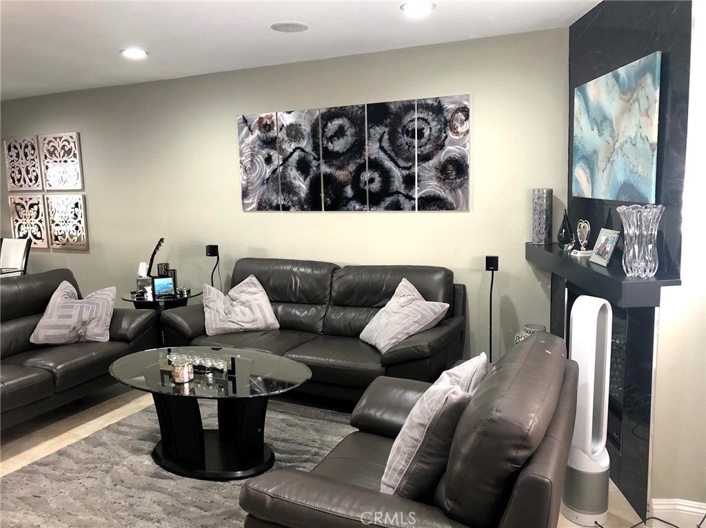 Located in peaceful and tranquil Warner Woods. Close to freeway, parks, malls and restaurants. Fully remodeled. Open floor plan with beautiful wood flooring, Alexa smart control LED recessed lighting throughout the house. Living room with fireplace, built-in entertainment center with exotic granite counter top, built-in surround sound speakers in ceiling, and large sliding glass door with access to private balcony. New custom built kitchen cabinets with large center island and exotic granite counter tops and high-end Kitchenaid appliances. Built-in dining room hutch with matching granite counter top. Master bedroom has high ceilings with customized walk-in closet and large sliding glass door with access to private balcony. Master bathroom is fully remodeled with large standing shower and custom built double sink vanity with gorgeous granite counter top. Second bedroom with private bathroom which its also fully remodeled. Brand new A/C and furnace with NEST thermostat to control the A/C and heating. Not included in property assessor's square footage is a approximate large 12 x 13 feet bonus room used as an office with washer and dryer hookups. Two car garage with direct access to the unit.