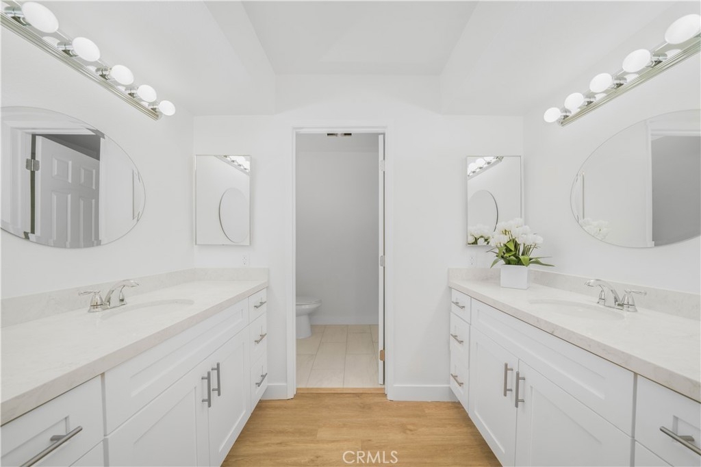Beautiful Warner Center Townhome in highly sought-after Woodland Grove complex. Very rarely you will find units for sale in this complex. 3 Fireplaces, 2 Car attached Garage, lovely private front patio are just the beginning of what this exquisite unit has to offer. Recently remodeled with newer flooring, newer bathrooms, paint, quartz counter tops and much more. Impressive living room with extra high ceilings and cozy fireplace sets the tone for your expectations for a well-appointed lifestyle. Large open kitchen with Center Island and breakfast bar, family room area with Fireplace and built-in desk is a perfect hangout space with friends before enjoying an elegant dinner in your formal dining room. Lovely powder room will cater to your guests so your bedrooms can enjoy complete privacy from visitors. The beautiful super light and Extra Large Primary suite with Cathedral ceilings, Elegant Fireplace, recessed light and ample space for a sitting area has a large private bath with his and her’s vanities, double walk-in closet and a lovely setting for your private relaxation. Second bedroom upstairs is also a light and bright cheerful place for guests or office or the little ones with a large walk-in closet. Downstairs Bonus room with closet is like a 3rd Bedroom and is perfect for a gym, hobby room or just let your imagination run with it and use it for your own ideas. Small complex of 50 units with very low HOA fees. Across the street enjoy Free Concerts in the park during summer months, adjacent to The Village at Warner Center and only a short drive to beautiful sunny California Beaches. Convenient to Freeways, high-end shopping, entertainment, dining and in the heart of all the Buzz about the Rams new Headquarters. This will not only be a beautiful home to live in, but could be one of the best investments you have ever made for future gain. Lovely community pool, spa and area will be available for your enjoyment. You will love the lifestyle this unit and complex has to offer.