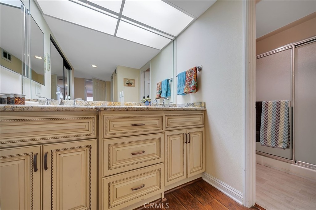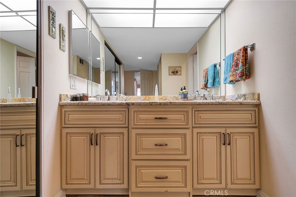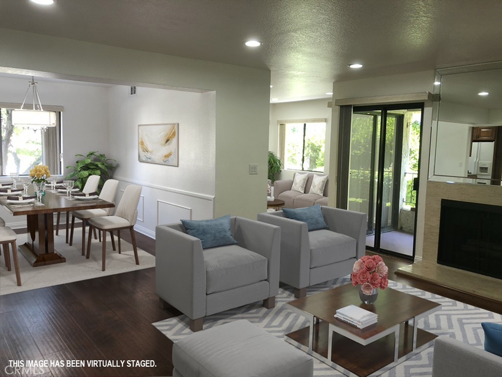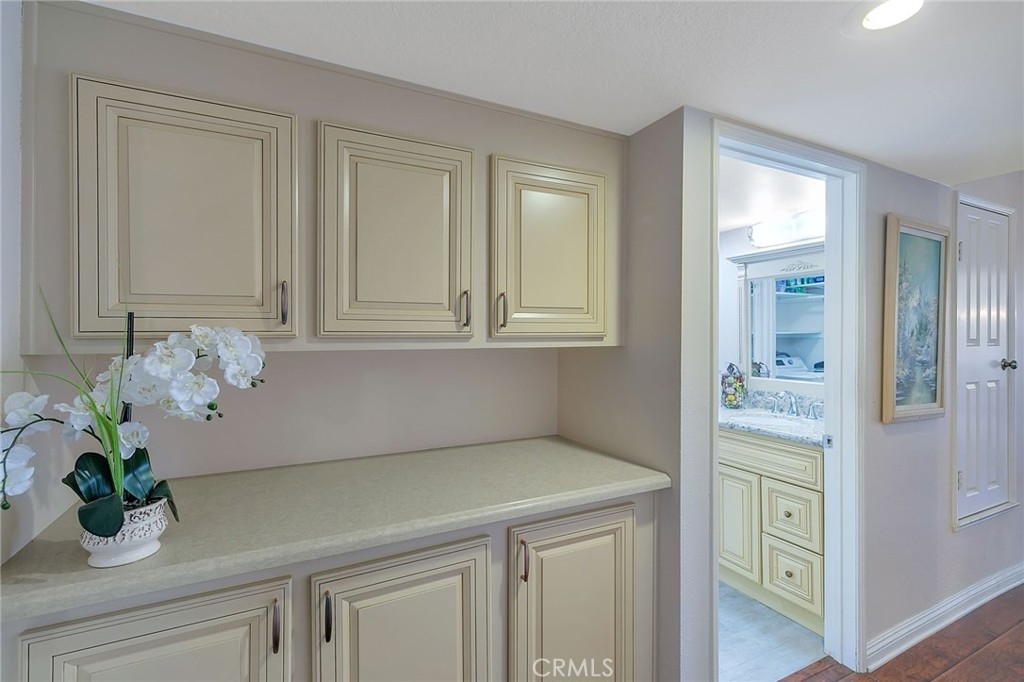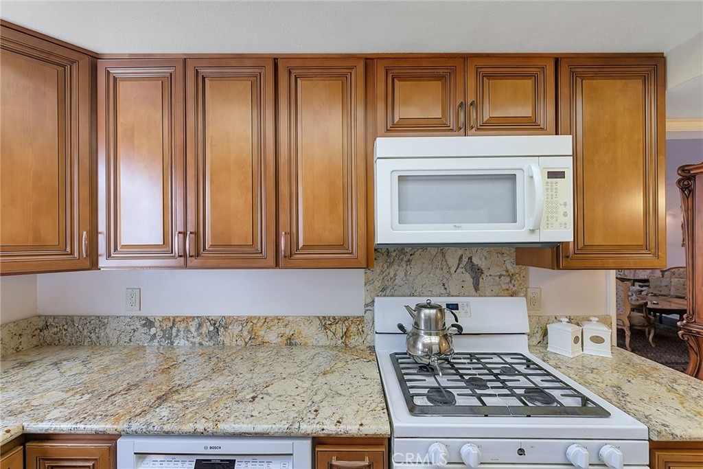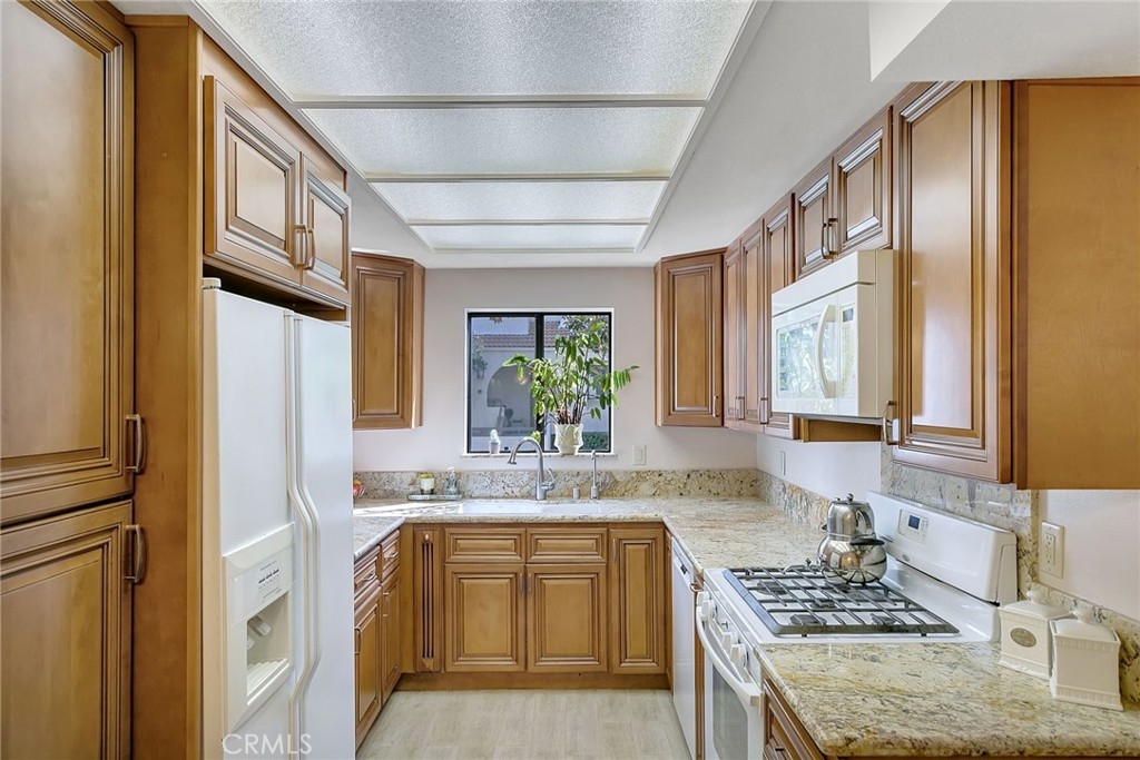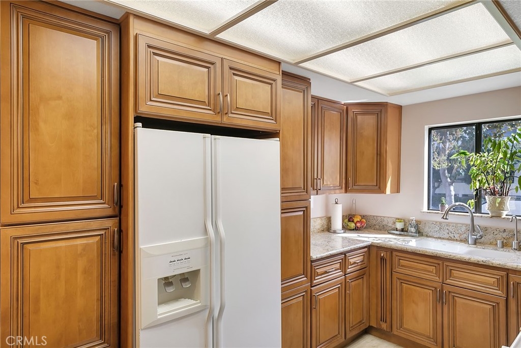 Great floor plan in security building with 2 bedroom PLUS den or office. 2 bathrooms, indoor laundry and patio. Remodeled with newer light fixtures. Granite in Kitchen and Bathrooms, beautiful custom cabinetry throughout. No carpets. Recessed lighting. Ceiling fan in Master. Walk-in closet. Washer, dryer and refrigerator included. Eating area in kitchen and formal dining room with wainscoting. Ideal location on Burbank, 1/2 way between the Topanga and Canoga freeway exits and close to amenities in Warner Center. HOA dues include water & trash. Owner will consider lease.