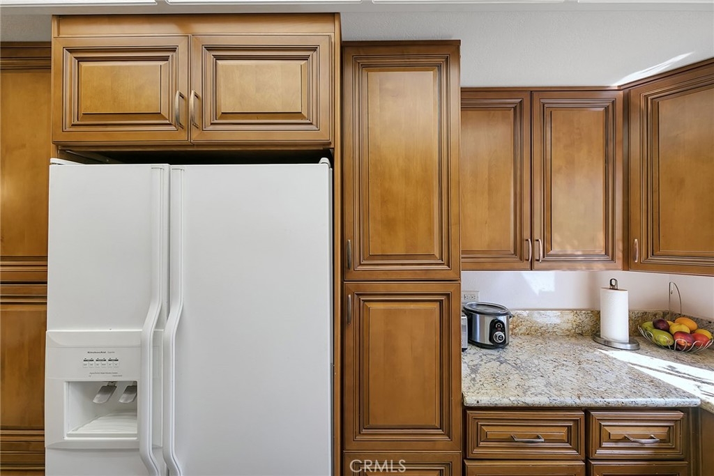 Great floor plan in security building with 2 bedroom PLUS den or office. 2 bathrooms, indoor laundry and patio. Remodeled with newer light fixtures. Granite in Kitchen and Bathrooms, beautiful custom cabinetry throughout. No carpets. Recessed lighting. Ceiling fan in Master. Walk-in closet. Washer, dryer and refrigerator included. Eating area in kitchen and formal dining room with wainscoting. Ideal location on Burbank, 1/2 way between the Topanga and Canoga freeway exits and close to amenities in Warner Center. HOA dues include water & trash. Owner will consider lease.