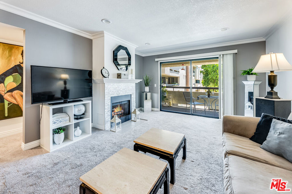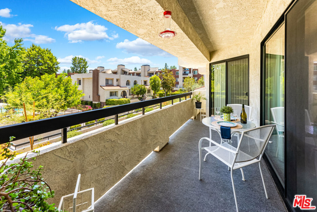 Tastefully updated 2-bedroom, 2 bathroom, single-level condo in the desirable Woodland Oaks complex. This condo was completely remodeled in 2015 with all new appliances, double-paned windows, and a new furnace. The open floorplan features a living room with a gas fireplace, beautiful kitchen with white cabinetry, black quartz countertops, stainless steel appliances, and a breakfast bar that opens to the dining area. The two bedrooms are on opposite sides of the condo. The spacious primary bedroom features a vanity area with dual sinks, a private bathroom, walk-in closet as well a secondary closet. The second bedroom is on the opposite side of the living room, with an additional full bath located in the hallway. Both bedrooms and the living room have access to a large balcony. A separate laundry room with a full-sized washer/dryer and ample storage is located just off the kitchen. The unit also comes with two tandem parking spots and an additional storage locker. Great location close to Westfield Topanga, The Village, and easy freeway access. The well-maintained complex (it's getting a new roof right now!) offers private grounds with a pool, jacuzzi, gym, and clubhouse making this an ideal place to live! HOA includes water, trash, and EQ insurance.