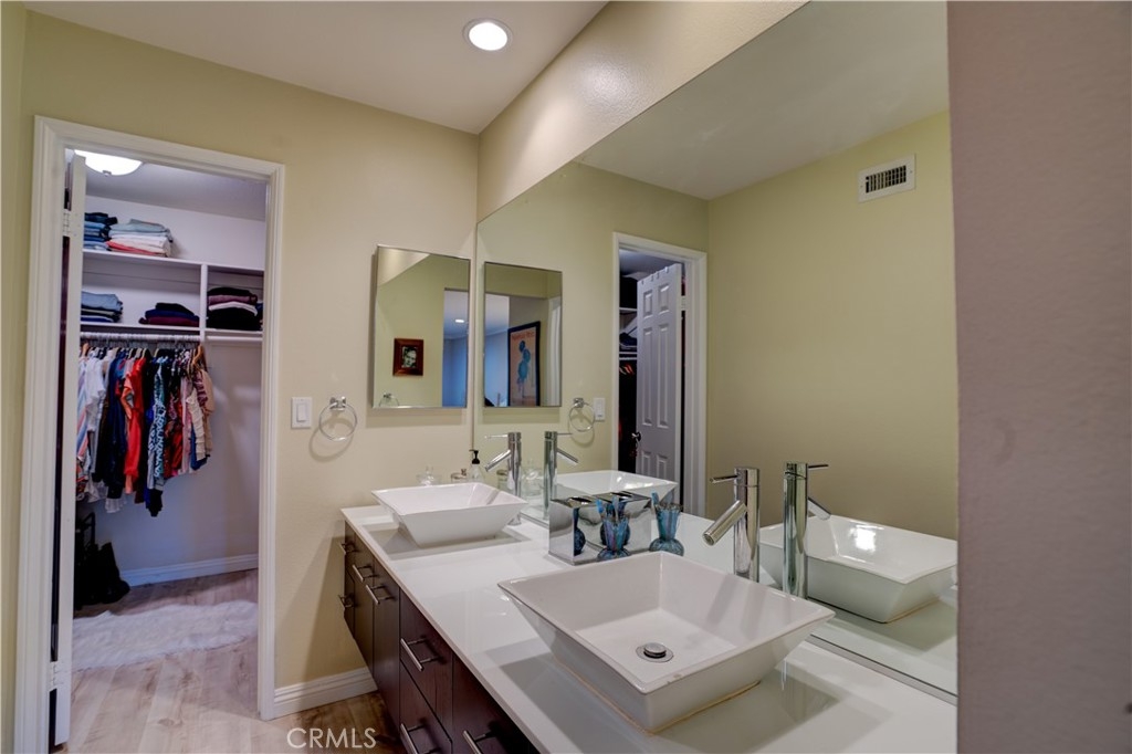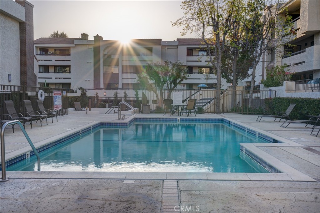 Lovely condo in the Woodland Hills area with 2 bedrooms and 2 baths. The condo has many amenities, such as easy access to commute, sidewalks for walking the neighborhood, a community pool and spa, and several great features in the home. The property showcases an open concept with the kitchen looking into the dining area and living space. The kitchen has all newer appliances with stainless steel appliances, ample storage, quartz countertops. The spacious living area features a beautiful stone fireplace with dining area. There is a utility room with a washer and dryer on the way to the shared bathroom. The master bedroom boasts plenty of space for bedding and furniture, a large walk in closet and master bathroom with double vanity and walk in shower. Enjoy an outdoor patio overlooking the tranquil neighborhood that can be reached from the common living area and master bedroom.