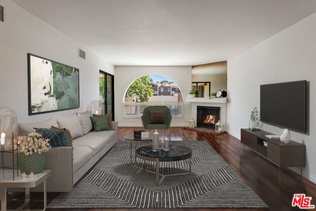 Top floor 2-bedroom, 2-bathroom, single-level condo in the desirable Woodland Oaks complex. This interior unit is in one of the best locations in the building, situated above the pool and courtyard. Immaculate and bright, it features engineered hardwood floors, smooth ceilings, an expansive balcony, gas fireplace, and kitchen with breakfast bar that opens to a dining area. Generously sized primary bedroom features fresh carpet, a dual vanity, separate bathroom with shower and a large walk-in closet. Secondary bedroom boasts vaulted ceilings and hardwood floors. The full-sized washer and dryer are located in their own closet and are included. The well-maintained complex, close to Westfield Topanga, The Village and with easy freeway access, offers private grounds with a pool, jacuzzi, gym, and rec room, making this an ideal place to live! Unit comes with two tandem parking spots, an additional storage locker and plenty of guest parking. HOA includes water, trash, and EQ insurance.