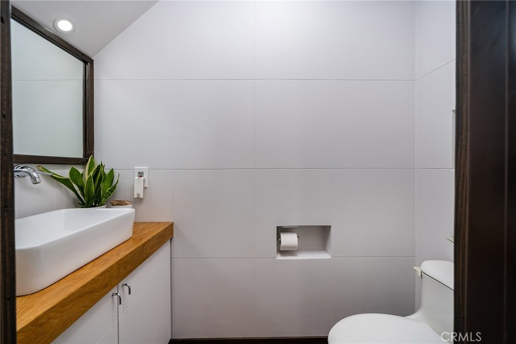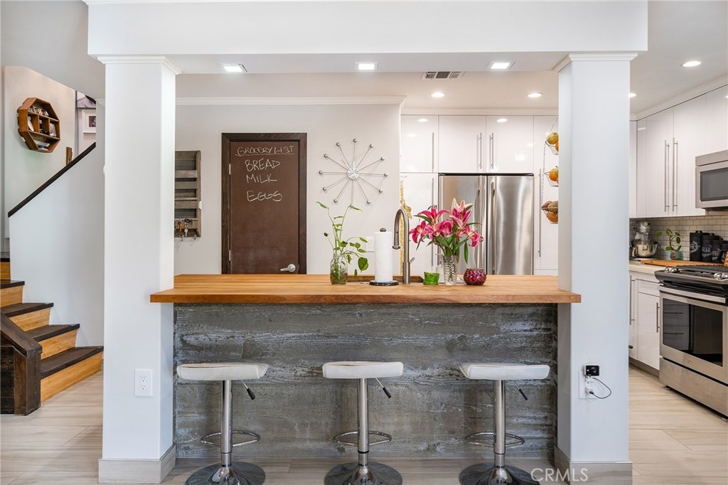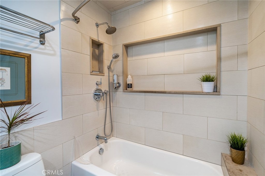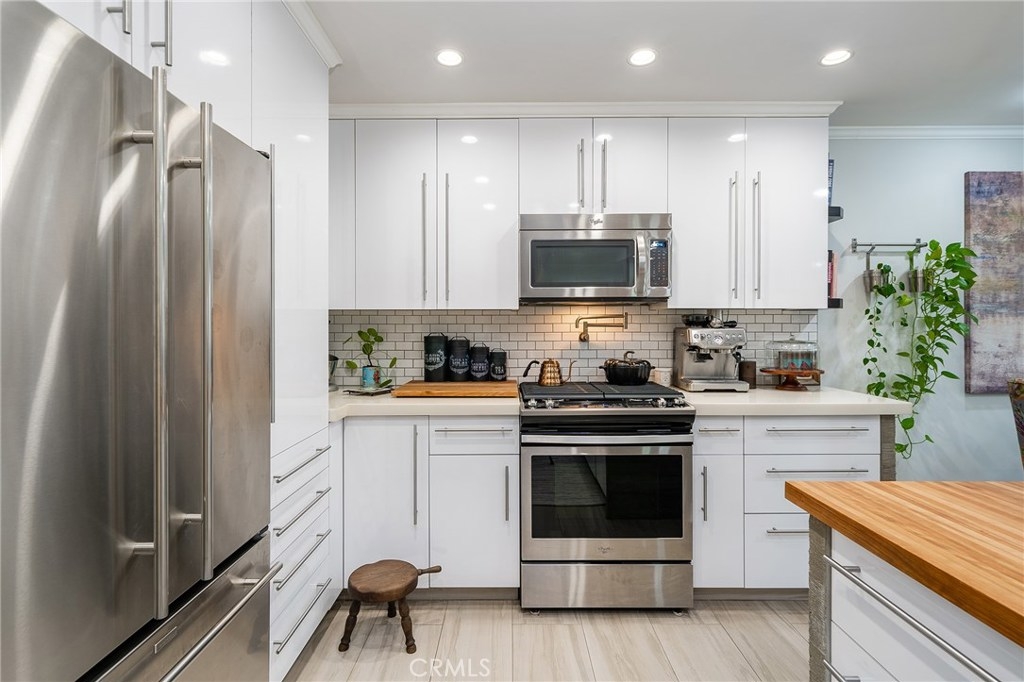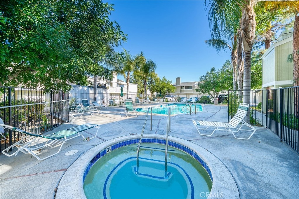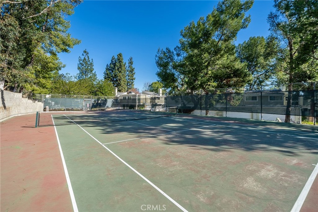 Beautifully updated Woodland Village Townhome with high end custom finishes throughout located in the heart of Woodland Hills. Enter from the front door or directly from your own 2 car garage thru a private courtyard into a completely light and bright open living space. A true chef's kitchen w/ huge custom butcher block center island countertop w/ sink, high gloss white finished kitchen cabinets, pot filler above stove/range. Porcelain tiles cover the entire first floor w/ built in tv wall cabinets and a gas fireplace. An elegant 1/2 bath powder room completes the ground floor. Moving to a stylish stairwell w/ sunroof brings you upstairs to bamboo flooring in the hall and both bedrooms. The master bedroom has a custom built-in wardrobe w/ desk, a vanity, a walk-in closet and its own sink. Tastefully remodeled master bath has concrete countertop, tile flooring and custom made cabinets. Bedroom #2 has a very suitable built-in desk. Stackable Washer & Dryer complete the second floor. Other features include L.E.D lighting throughout, central heating and air, Nest thermostat and Smart WiFi switches throughout. Complex has 2 swimming pools, spa and tennis courts. Just a few blocks from Ventura Blvd, Warner Center and The Village. Enjoy shopping, fine dining and entertainment just a few blocks from home. Easy 101 access and only minutes to the coast thru Topanga Canyon.