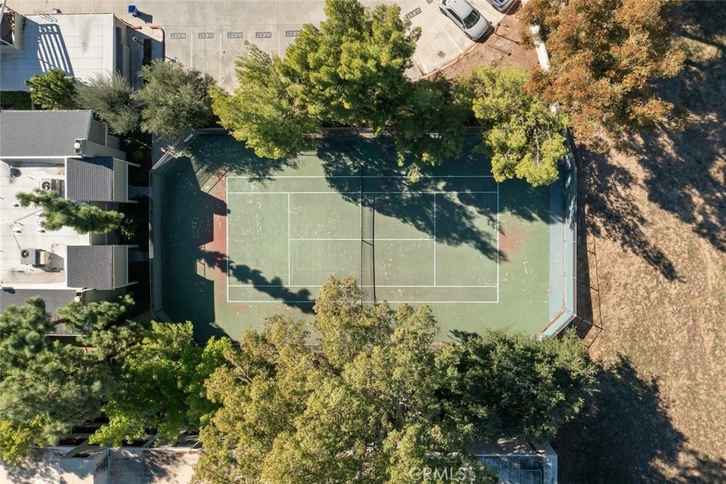 Rarely offered Woodland Village private end unit townhome with 2-car garage, in-unit laundry, and private balcony deck! The townhome is privately situated towards the back of the complex making it the ideal quiet location away from street noise. Enter the property though a quaint courtyard where there is also access to the 2-car garage with built-in storage. Step inside an entry foyer which leads upstairs where all the living spaces and bedrooms are conveniently located on the same level. An oversized light and bright living room has high vaulted ceiling, tiled fireplace, and wall-to-wall picture windows with plantation shutters found throughout. A separate spacious dining room has high vaulted ceiling, direct kitchen access, and a sliding glass door that opens to a large balcony deck with overhead trellis that overlooks the complex and provides a great space for outdoor dining and entertaining. The upgraded kitchen has granite counters, great built-in cabinets with pantry space, and a full suite of appliances including built-in range, microwave, dishwasher, and fridge/freezer. The two bedrooms are located down a private wing with large hallway storage cabinetry and convenient laundry area with side-by-side washer and dryer. The primary bedroom has large closet with custom built-ins and private en-suite upgraded bathroom with newer tiling, cast iron bathtub & shower with Berkey water filter. The second bedroom also has a good sized closet with custom built-ins and access to a hall bathroom which can also be used as a guest powder bath. Additional system upgrades include: newer American Standard air conditioning unit with Ecobee smart thermostat and newer Simonton dual pane windows installed throughout. The complex offers terrific amenities including two swimming pools & spas, two tennis courts, and guest parking. Adjacent to dining/shopping at Westfield Topanga Mall and Village including the vibrant Topanga Social, Calabasas Commons, Warner Center and Warner Park which hosts 4th of July fireworks and summer concerts, and a short drive over the canyon to the beaches and Malibu.