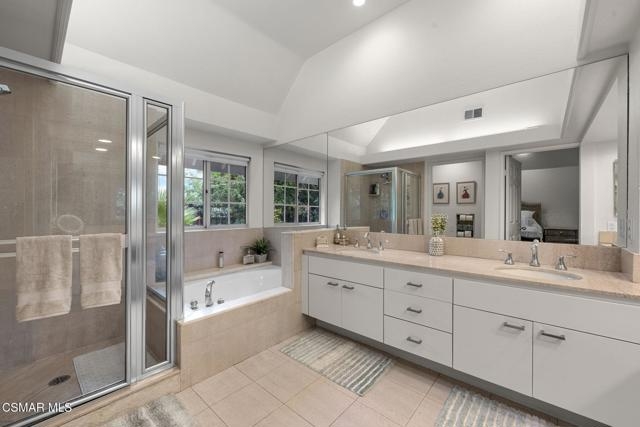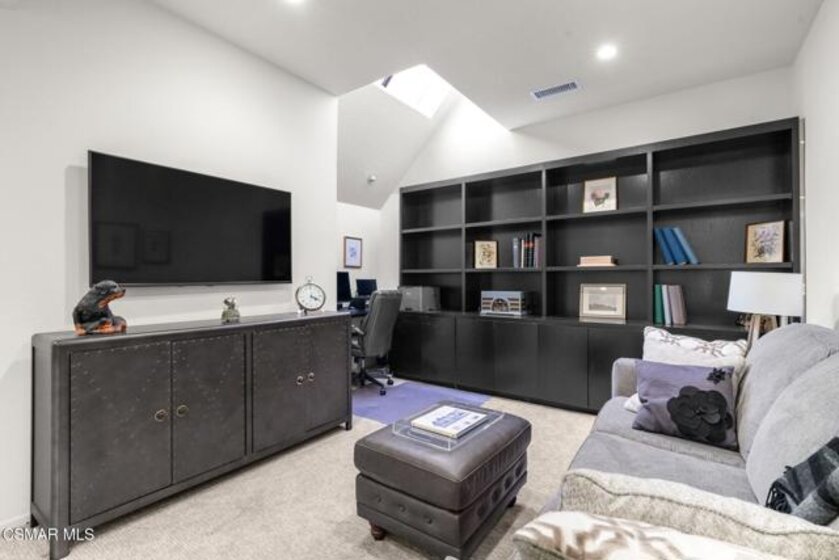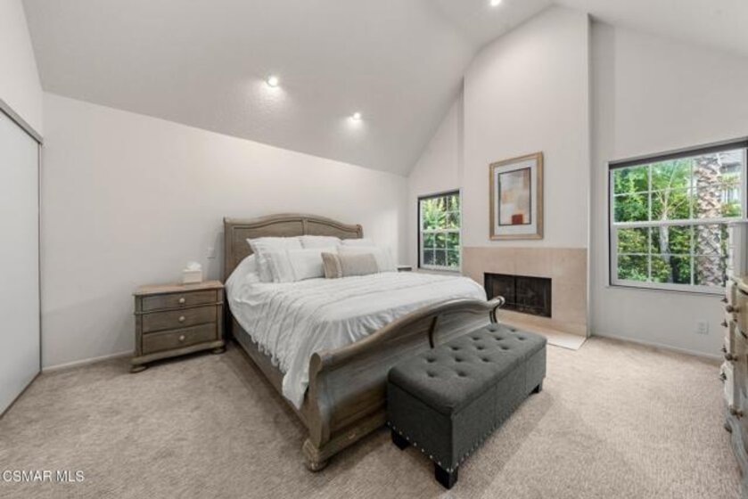 Welcome to Warner Hill, Woodland Hills' premier gated townhome community. This stunning 3-bedroom, 2.5-bathroom Cape Cod-style residence combines elegance, comfort, and convenience in one exceptional package.The main level features a step-up living room with soaring ceilings, a gas fireplace, tons of natural light, and French doors opening to a spacious patio--perfect for dining or relaxation. Just above, an elegant dining room with plenty of space sits adjacent to a half bath, laundry room, and eat- kitchen with granite counters, bar seating, and a kitchen dinette.Upstairs, the double-door primary suite offers vaulted ceilings, a second fireplace, dual closets, and a spa-like bath with double vanities, soaking tub, and walk-in shower. Two additional bedrooms, light and bright hall bath, and a large skylit loft--ideal as an office, gym, or possible fourth bedroom--complete the upper level.Additional highlights include a direct access two-car garage, three deep storage closets, and access to the community's pool, spa, and beautifully maintained grounds. HOA dues cover water, trash, earthquake insurance, roof, security gate with camera, and common area maintenance.Just minutes from Westfield Topanga, The Village, Warner Center, top schools, Kaiser Permanente, and the 101 freeway, this home offers both luxury and convenience in an unbeatable location.