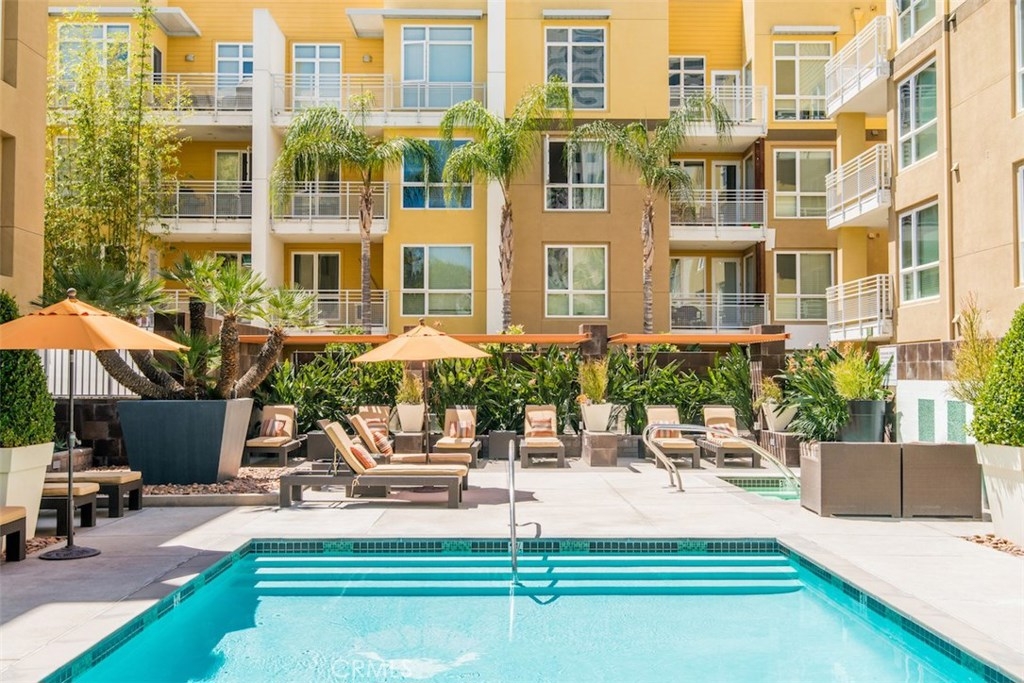 Located at the Ascent at Warner Center within blocks of The Village, the future Promenade 2035, the Topanga Mall, and Warner Park, this contemporary resort style condo is a true urban oasis. This gorgeous corner unit offers one of the best floor plans for maximum privacy, with 2 beds + 2 baths on opposite sides of the unit, and an open concept layout for the living areas. High ceilings and large windows let plenty of natural light in, accentuating the spacious living and dining areas. Built in 2010, it offers an abundance of features and amenities that make this an ideal home ready for move-in, including a fully appointed kitchen with stainless steel appliances; granite counters in the kitchen and baths; plenty of storage including a walk-in closet, abundant kitchen cabinets, and a storage unit in the garage; in-unit laundry; and 2 assigned parking spaces. Community amenities are top notch including a sparkling swimming pool, spa, and lounges; wifi-enabled common areas; fitness center with cardio, weights, and TVs; a clubhouse with conference center, screening room, kitchen, and game room; outdoor barbecues and alfresco lounges with fireplaces; electric vehicle charging stations; security patrol; plus, it's pet friendly with a dog run! This unit is the whole package, and within just blocks of all the best shopping, dining, and entertainment that Woodland Hills has to offer.