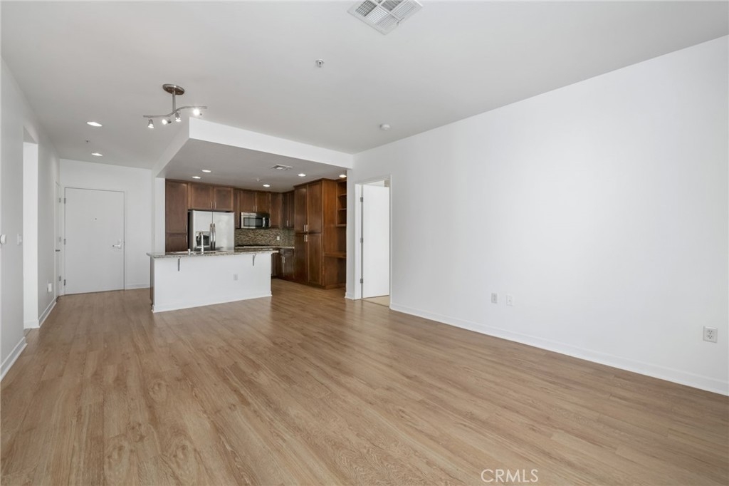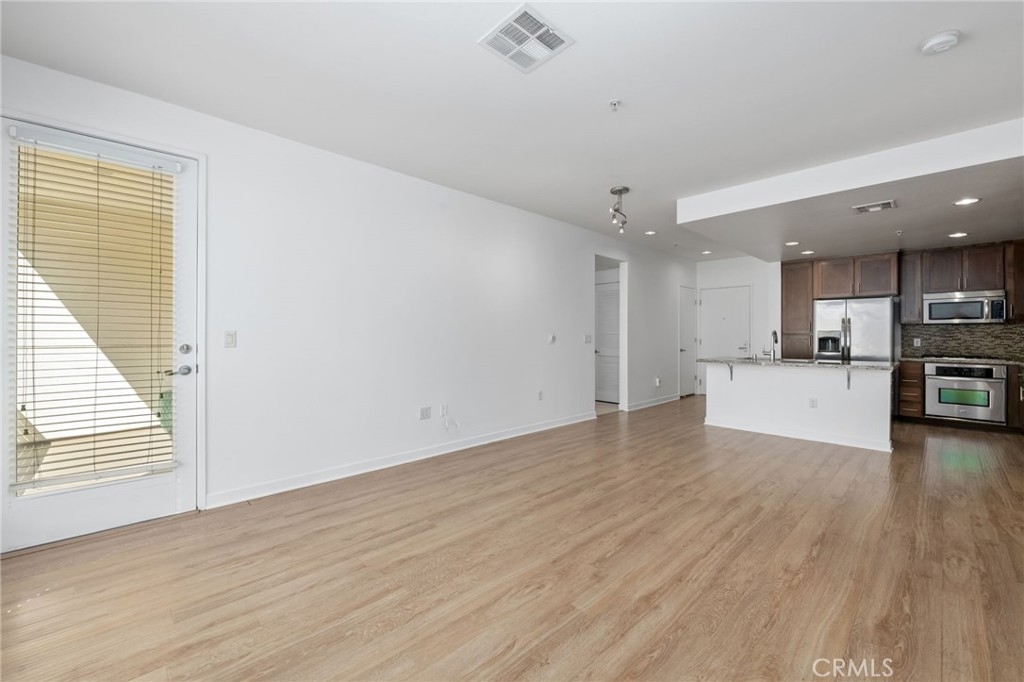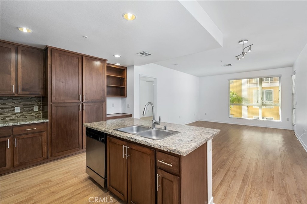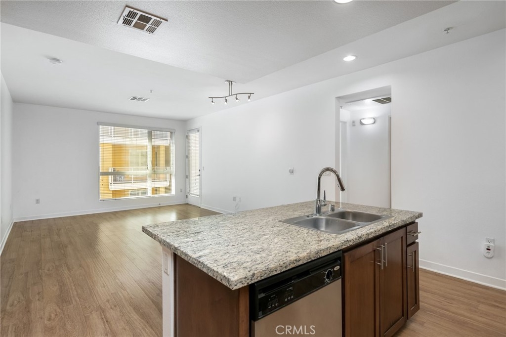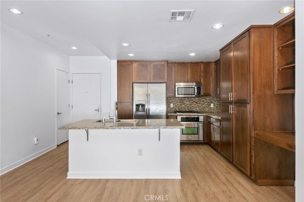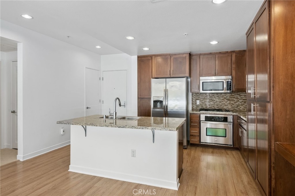 Experience unparalleled convenience at Ascent Warner Center in Woodland Hills, with walkable access to shops and restaurants. This well-appointed condo offers a lifestyle enriched by HOA amenities, including a pool, fitness center, and clubhouse, all secured by 24-hour surveillance. Inside, enjoy new carpet, fresh paint, laminated flooring throughout the living room and kitchen, a chef's kitchen with granite countertop, and a primary suite with walk-in closet and double vanity. In-unit laundry, two assigned parking spaces (#82 & #135), ample guest parking, secure mailboxes, and package lockers complete this desirable residence.