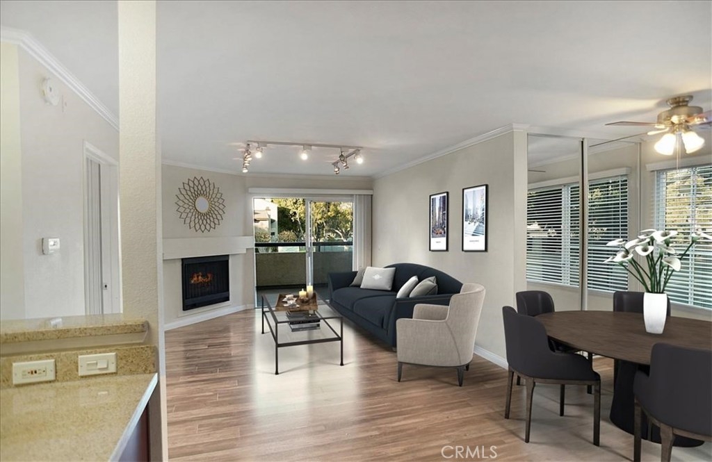 Welcome to the Met at Warner Center a Luxury Resort Like Setting in the Heart of Warner Center. Larger, Rarely Available, Light ant Bright 1 Bedroom and DEN Floor Plan with Designer Touches. Formal Entry leads to Spacious Open Floor Plan Living. Kitchen with Cherry Cabinetry, Granite Countertops, Stainless Appliances including Refrigerator. Living Room with Cozy Fireplace and Access to Large Wraparound Balcony. Dining Room with Window and Closet. The Den is Perfect for Working from Home. Bedroom with Attached Bath with Tub/Shower Combination, White Cabinetry with Granite Counters and Two Closets. This unit includes 1 Covered and 1 Uncovered Parking Spaces. Entry, Kitchen, Dining and Living Room have Pergo Flooring. The Met is a 24-Hour Guard Gated Resort Like Community with 4 Pools, Lighted Tennis Courts, Gym, Kids Play Area and Verdant Grounds. Low HOA Fees include Earthquake Insurance. Come Live and Play at the Met at Warner Center! This Complex IS VA and FHA Approved!