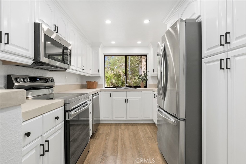 Beautifully remodeled two bedroom, two bathroom home located in the exclusive Warner Club Villas in the heart of Woodland Hills. This light filled residence offers an open, inviting layout with great flow and thoughtful updates throughout. The spacious living room opens to the kitchen and dining area and features sliding doors leading to a private, low maintenance patio with artificial grass and lush privacy landscaping, perfect for indoor outdoor living. A separate versatile family room provides flexible space for lounging, a home office, or potential third bedroom which is just opposite to the secondary bedroom and full bathroom on the same level. Just a few steps up is the beautiful private primary suite featuring vaulted ceilings, a cozy fireplace, and a spacious bathroom retreat. Additional highlights include newer light wide plank luxury vinyl flooring, fresh paint throughout, beautiful finishes from floor to ceiling, a private two-car attached garage with direct access and laundry area. The resort style community offers a pool, spa, tennis courts, and walking paths, and is conveniently located across from Warner Center Park, offering easy access to outdoor exercise, summer concerts in the park, and the annual Fourth of July celebration, all just minutes from The Village, Westfield Topanga, and some of Woodland Hills’ best dining, shopping, conveniences and entertainment.