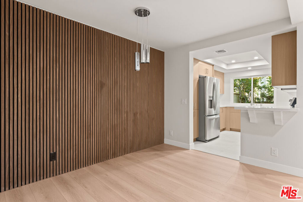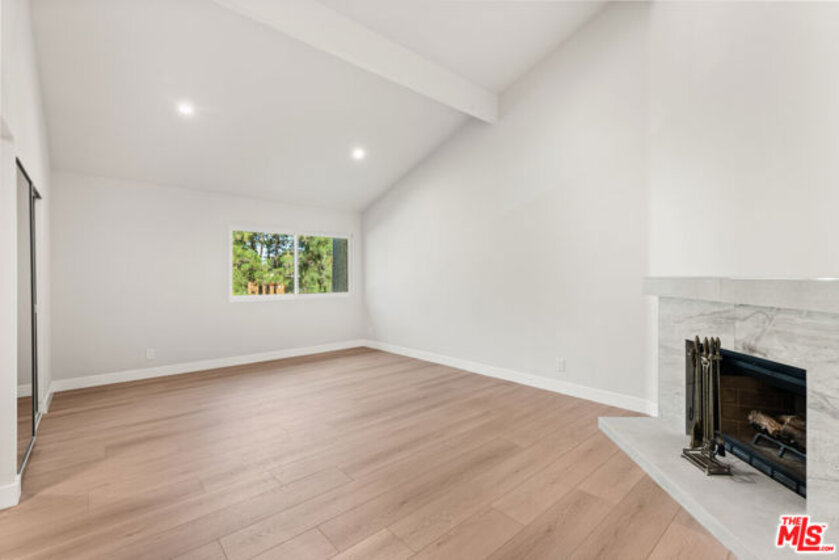 Completely reimagined and never lived in since its recent designer remodel, this stunning 2-bedroom, 2-bathroom townhouse with a dedicated family room is a rare, turnkey offering within the gated Warner Club Villas community. The entry opens to wide-plank light oak flooring, recessed LED lighting, and a bright, modern palette that feels both sophisticated and inviting. The expansive living room is anchored by a stylish fireplace wrapped in textured stone with a custom wood mantel, creating a warm yet contemporary focal point. An architectural floor-to-ceiling slatted wood accent wall defines the dining area, adding dramatic visual interest and a high-end, custom-home feel rarely found in townhome living. Above, sleek modern pendant lighting complements the clean lines and thoughtful design. The fully renovated kitchen is equally impressive, featuring custom flat-panel wood cabinetry, crisp stone countertops with a full-height backsplash, stainless steel appliances, and a breakfast bar that opens seamlessly to the living space. A recessed tray ceiling with integrated lighting adds depth and polish, while a large window frames lush greenery, bringing natural light into the heart of the home. Both bathrooms have been completely rebuilt with spa-inspired finishes, showcasing custom wood vanities, stone countertops, modern fixtures, and oversized walk-in showers with floor-to-ceiling stone, frameless glass enclosures, built-in niches, and designer mosaic flooring delivering a refined, boutique-hotel experience. The bedrooms are generously sized and serene, offering new flooring, smooth walls, and abundant natural light. The primary suite provides a calm retreat, while the secondary bedroom is perfect for guests, family, or a home office. Step outside to a private, gated front patio, ideal for morning coffee, al fresco dining, or evening relaxation extension of the living space that enhances everyday lifestyle. Additional highlights include direct access to a private attached two-car garage, plentiful guest parking, and resort-style community amenities including a pool, spa, lighted tennis courts, and beautifully maintained grounds. Ideally located just moments from The Village, Westfield Topanga, Warner Center Park, fine dining, entertainment, and convenient access to the 101 freeway, this residence offers modern luxury, thoughtful design, and true move-in-ready living in one of Woodland Hills' most desirable communities.