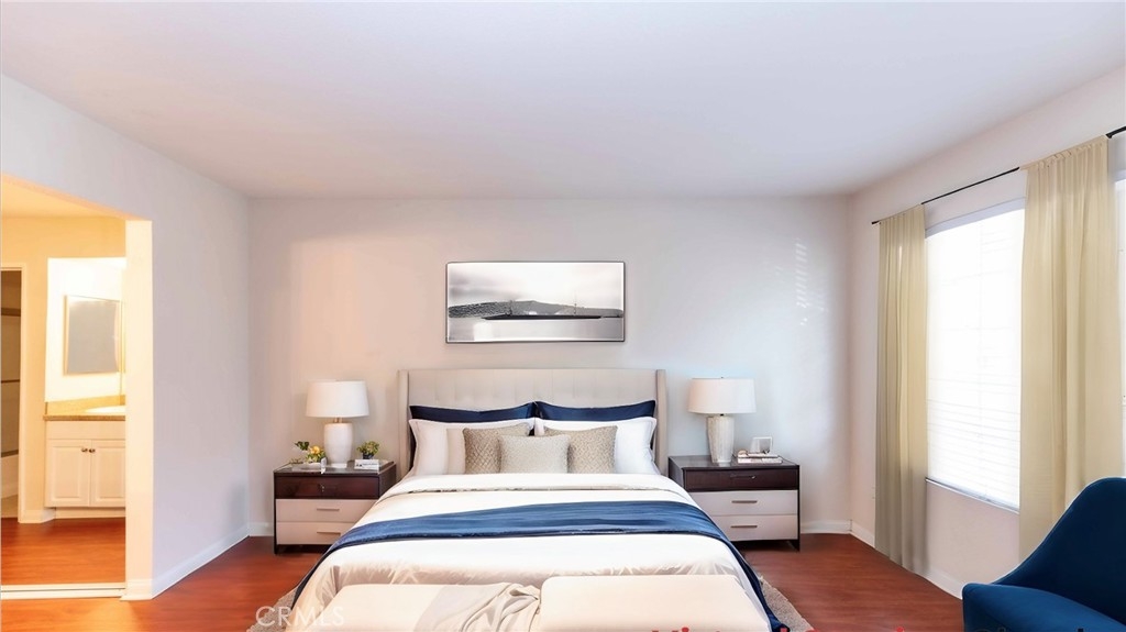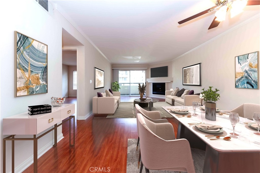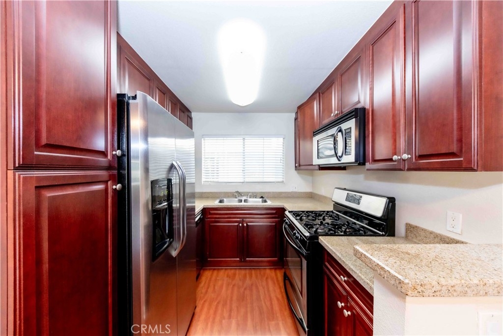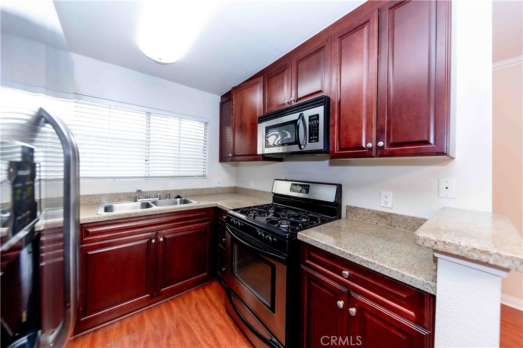 Welcome to the Met! First floor, 2-Bedroom, 2-Bathroom, perfectly situated within the guard-gated community in the heart of Woodland Hills. Upon entering, you're greeted by a spacious living and dining room featuring wood-like floor, a cozy gas fireplace, and slider doors that lead out to a generous balcony with room for seating, grilling, and extra storage closet. The well-appointed kitchen seamlessly opens to the living and dining area, perfect for entertaining. The primary bedroom boasts an attached full bath with double vanity sinks and a large closet. A secondary bedroom, with ample closet space, a full hallway bathroom, and convenient in-unit laundry area with washer and dryer. Additional community laundry facilities are available for larger items. This unit includes one subterranean parking space, plus a convenient parking spot located in front of the unit, close to the entrance for easy access. The resort style gated community has 4 pools and spas, several tennis, racquet, and basketball courts, as well as a fitness center, sauna, children's playground, and visitor parking. Easy access to freeways, parks, restaurants, and shopping such as, Whole Foods, the Topanga Mall... The HOA covers earthquake insurance, trash, sewer, water, and upkeep of common areas. Experience the best of resort-style living with the convenience of a prime location in Woodland Hills. Don’t miss out on this exceptional opportunity!