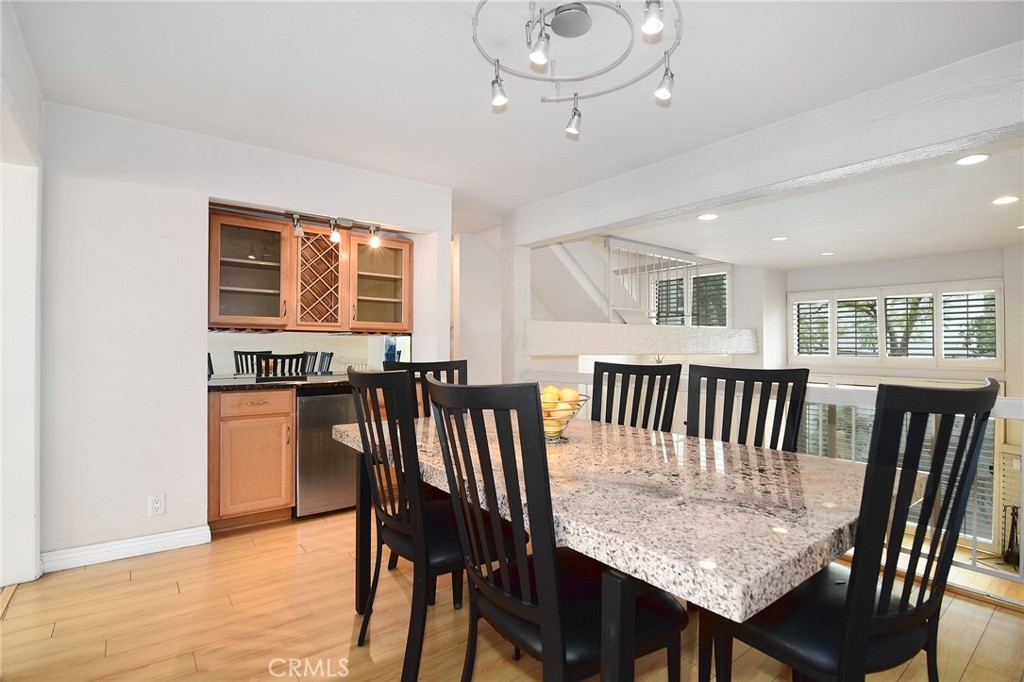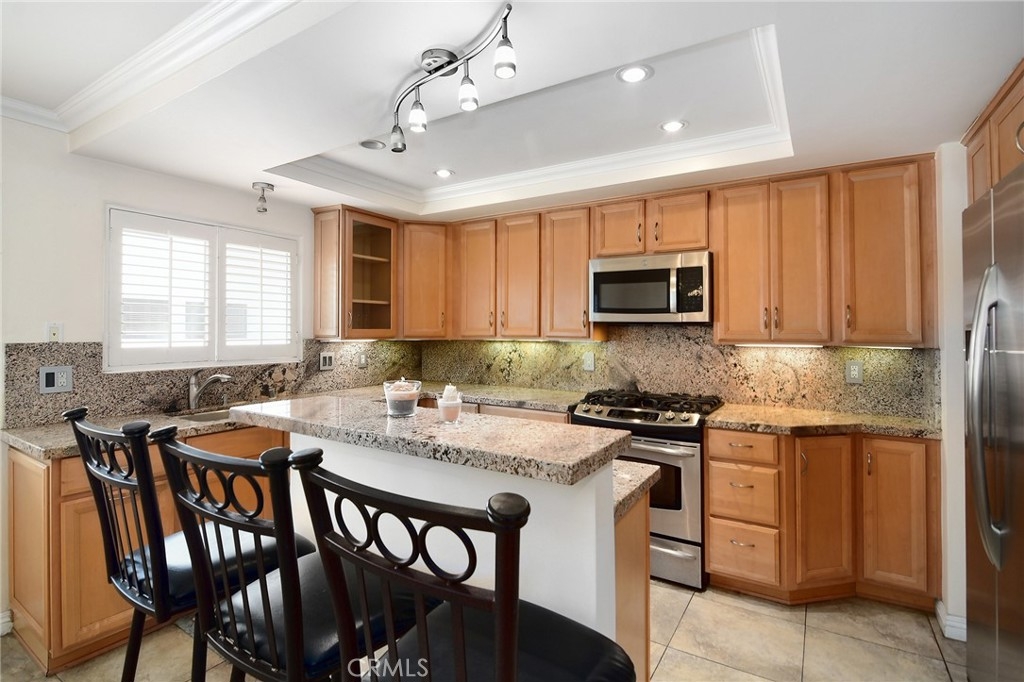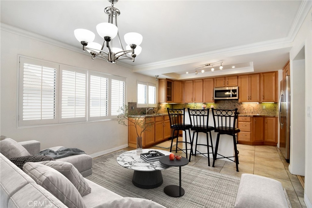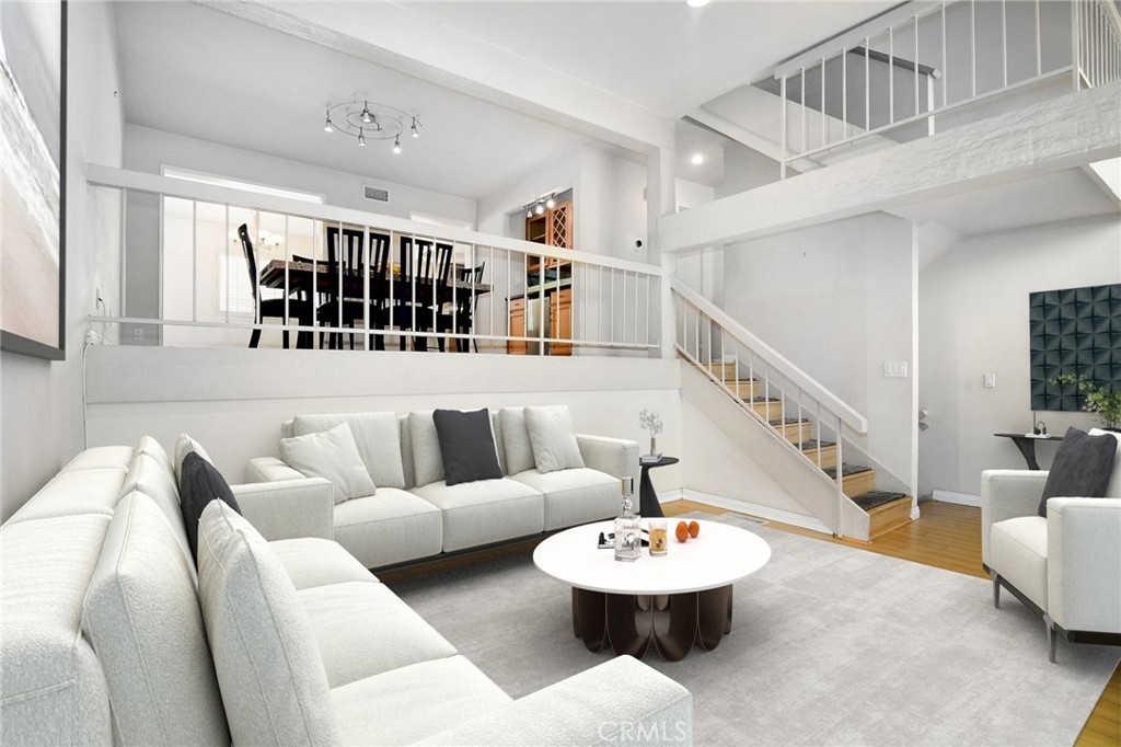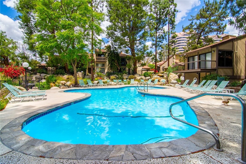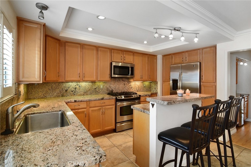 Beautiful 3 bed, 2.5 bath townhouse in the heart of Warner Center, a booming neighborhood with exciting new projects. With an open floor plan, airy and specious, completely updated, this unit looks amazing. Living room with cathedral ceilings, impressive fireplace and access to a private patio; good size dining room with a custom made granite table and built-in bar; large kitchen with an island, high-end cabinets, granite countertops and stainless steal appliances opens to charming family room. Upstairs you will find a specious en suit primary bedroom with high ceiling, nice balcony and a massive walk-in closet, 2 additional bedrooms and hallway bathroom. Double pain windows and sliding doors, smooth ceilings, recessed lighting, laminate and natural stone tile floors, beautiful kitchen and bathrooms, 2-car attached garage with plenty of storage space make this property very special. Nice community with gated access, pool, Spa, tennis court and a lot of beautiful trees. Besides earthquake insurance, maintenance, landscaping and trash removal HOA dues cover water, basic cable and internet. Resort style living and yet next door from all the activities Warner Center has to offer:shopping, entertainment and fine dining. Less than a mile away from famous "The Village", short distance to Topanga Mall, Costco, Amazon Fresh store and Woodland Hills Park, close to public transportation, easy access to 101 freeway. Some pictures of the unit are virtually staged.
