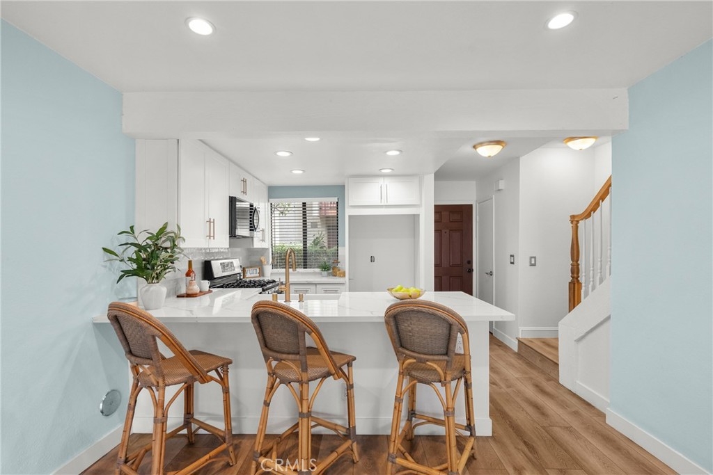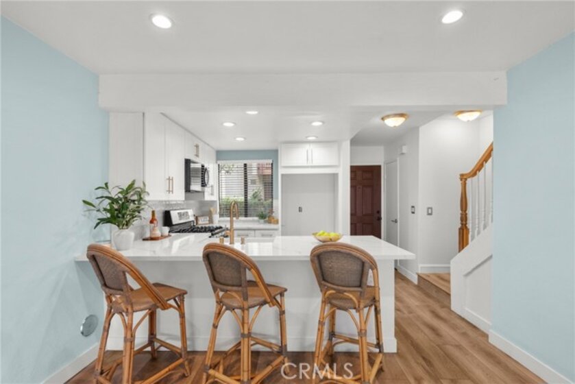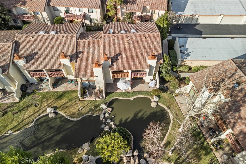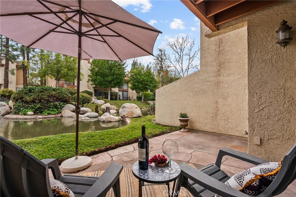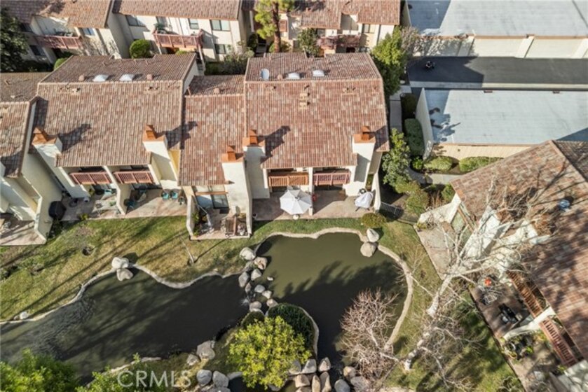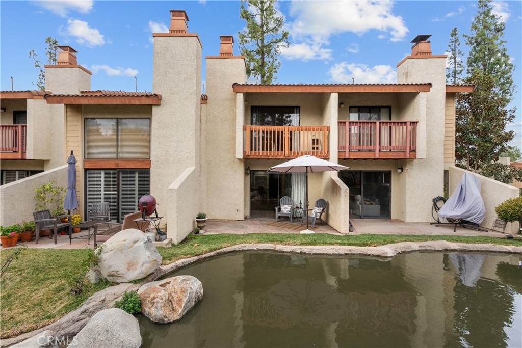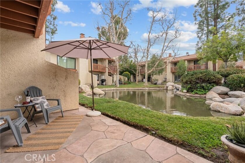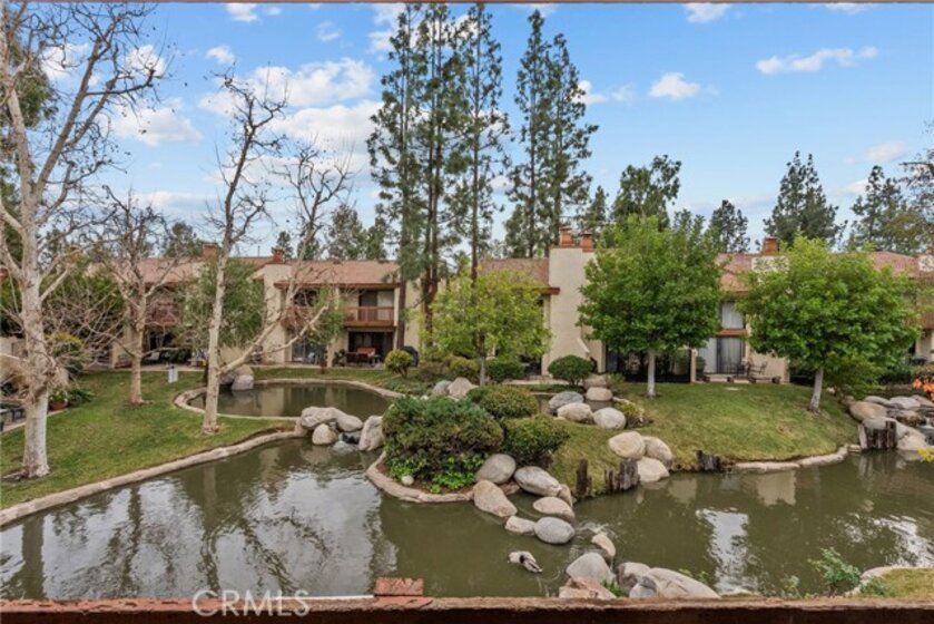 Welcome home to a bright, easy-living 2-bedroom, 2-bath condo where the view is part of your everyday. The open floorplan flows seamlessly from the living room to a slider that opens to your private patio, perfectly positioned to take in the peaceful stream, waterfalls and lush landscaping—complete with koi, turtles and ducks gliding by. At the heart of the home is a beautiful new kitchen with quartz countertops, bar seating, and an open connection to the living area—ideal for hosting, homework at the counter, or slow weekend mornings. Laminate wood flooring adds a clean, modern look throughout, and big-ticket upgrades bring confidence with a newer A/C and new water heater. Both bedrooms are designed for comfort and privacy, each featuring its own attached balcony—a rare bonus for fresh air, quiet moments, and that “I can breathe here” feeling. A detached garage rounds out the convenience. Enjoy resort-style community amenities including a pool, tennis courts, gazebo, and beautifully maintained grounds that make every walk feel like a mini getaway. This is more than a townhome—it’s a lifestyle you’ll look forward to coming home to.