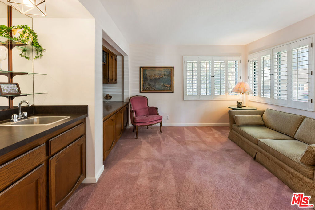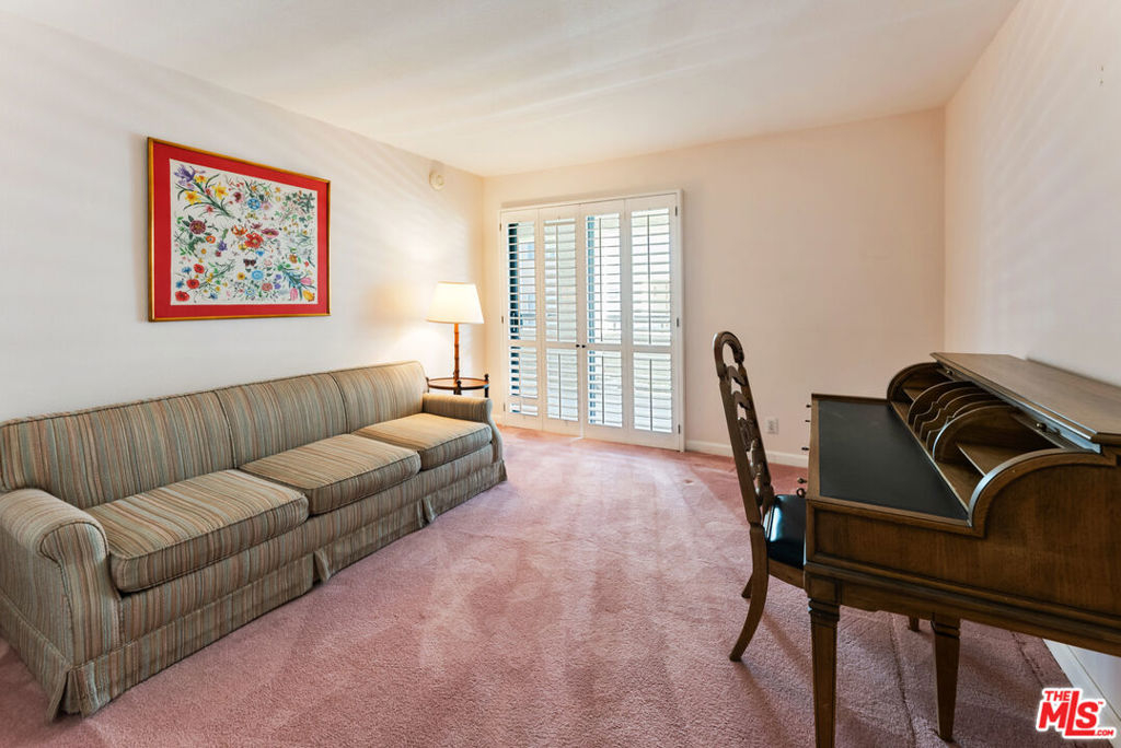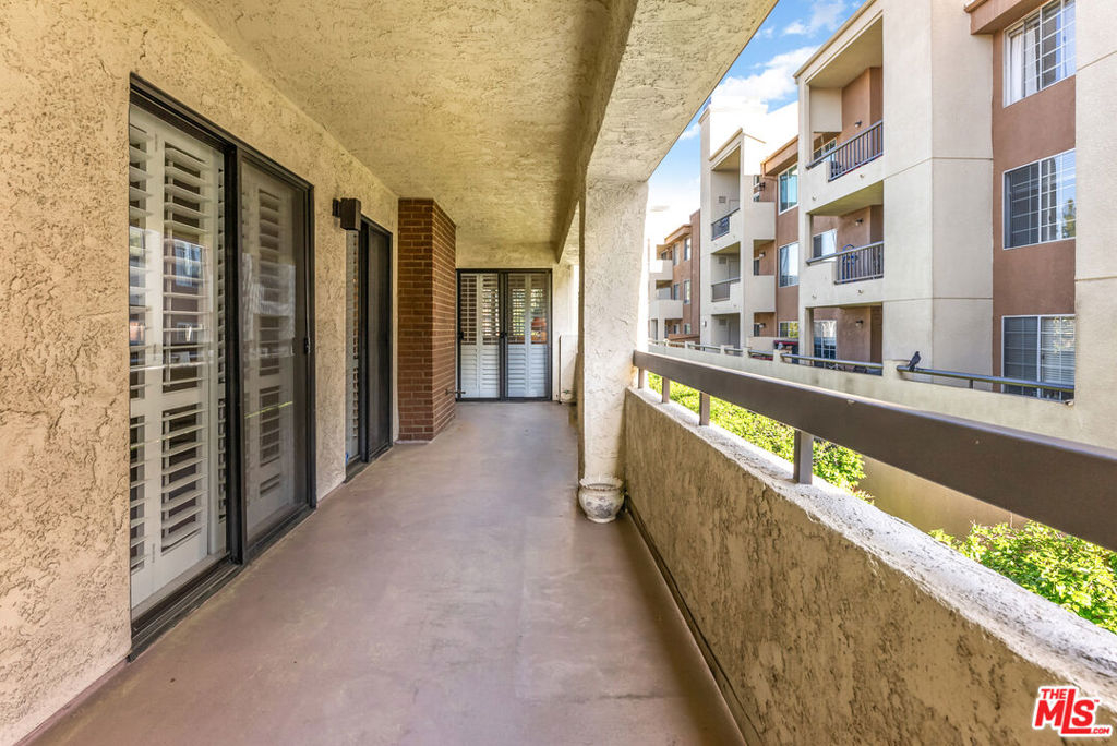 Large one-level, corner unit condo with two bedrooms, two bathrooms and a huge den that could be easily converted to a third bedroom. Spacious living room features a white brick fireplace and access to a balcony that spans the entire unit. Clean, bright eat-in kitchen features white cabinetry and tile countertops. With only one shared wall, this unit is one of the largest of the floorplans in the Woodland Oaks complex (in fact it's one of the largest single-level condos available in Woodland Hills) and one of a few to offer a separate formal dining area. Spacious primary bedroom features a huge walk-in closet plus another closet with mirrored doors, double vanity, private bathroom, and balcony access. Generously sized secondary bedroom also offers balcony access. Laundry room with side-by-side hookups adjacent to the main bathroom. The unit also features wood shutters throughout. With two coat closets, additional built-in cabinets and shelving, plus a locker in the garage the unit offers plenty of storage. Two assigned parking spots plus lots of guest parking. Great location close to Westfield Topanga, The Village, and easy freeway access. Complex offers private grounds with a pool, jacuzzi, gym, and clubhouse, making this an ideal place to live! HOA includes water, trash and EQ insurance and a brand-new roof.